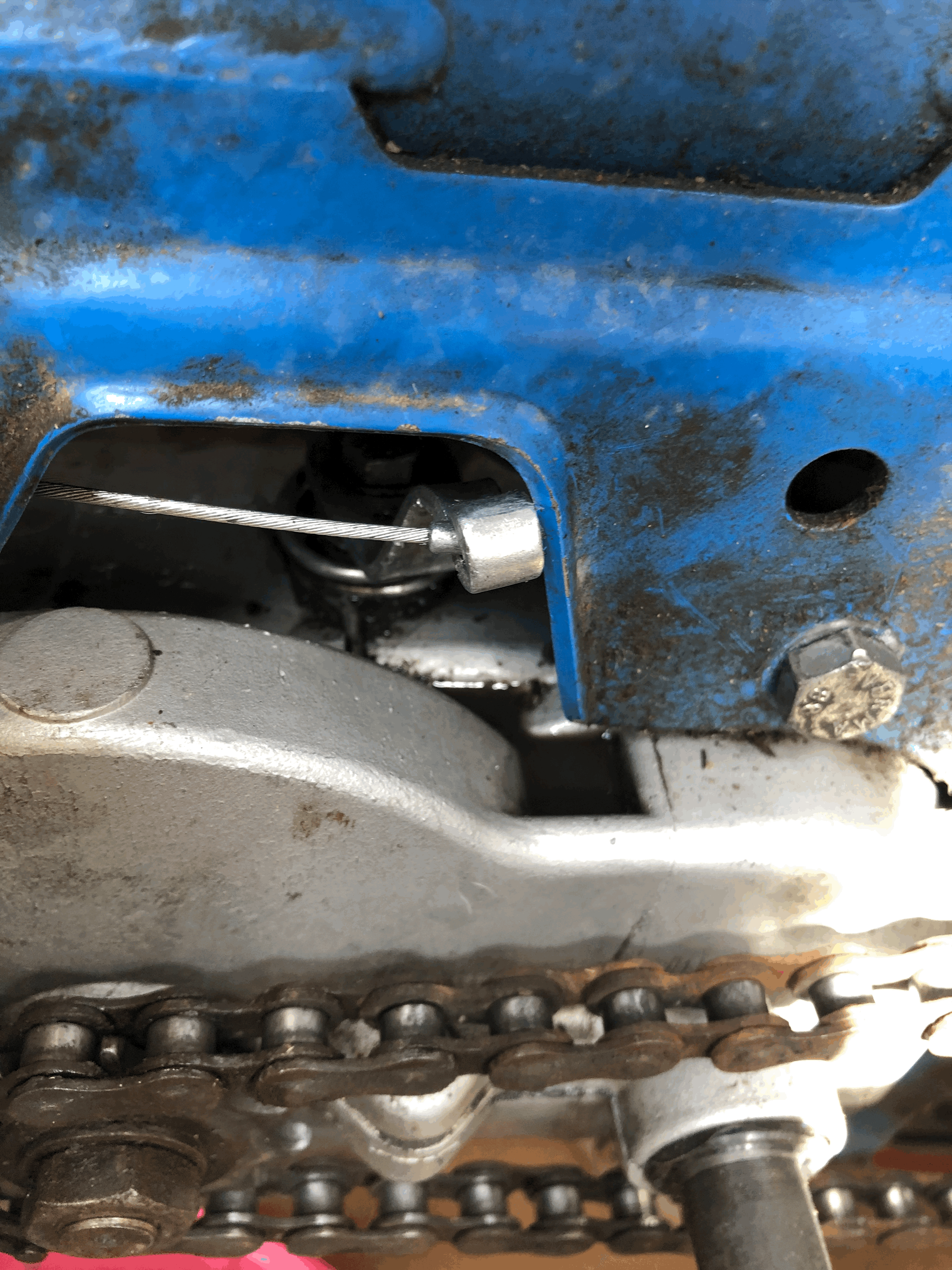 Hab mal ein Bild gemacht, so sieht das aus. Der Hebel kann nicht weiter nach hinten wie auf dem Bild, da er am Rahmen anstößt.