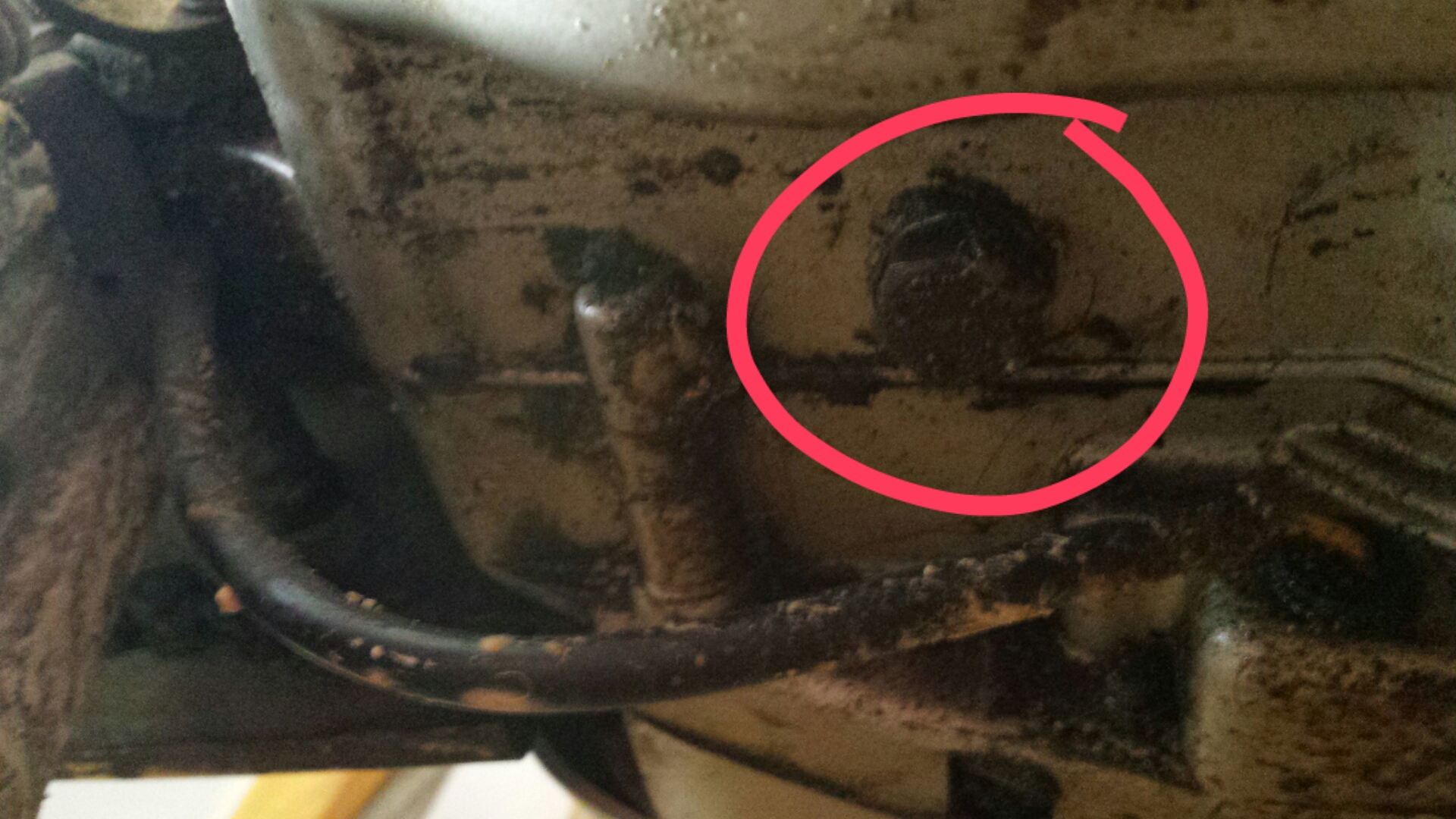 So, ich bin's nochmal, ich hab mir das heute nochmal angeschaut, die Kontrollschraube scheint mir sehr weit unten... Ich hab mal ein Bild von ihr gemacht, das ist definitiv nicht die Ablassschraube.