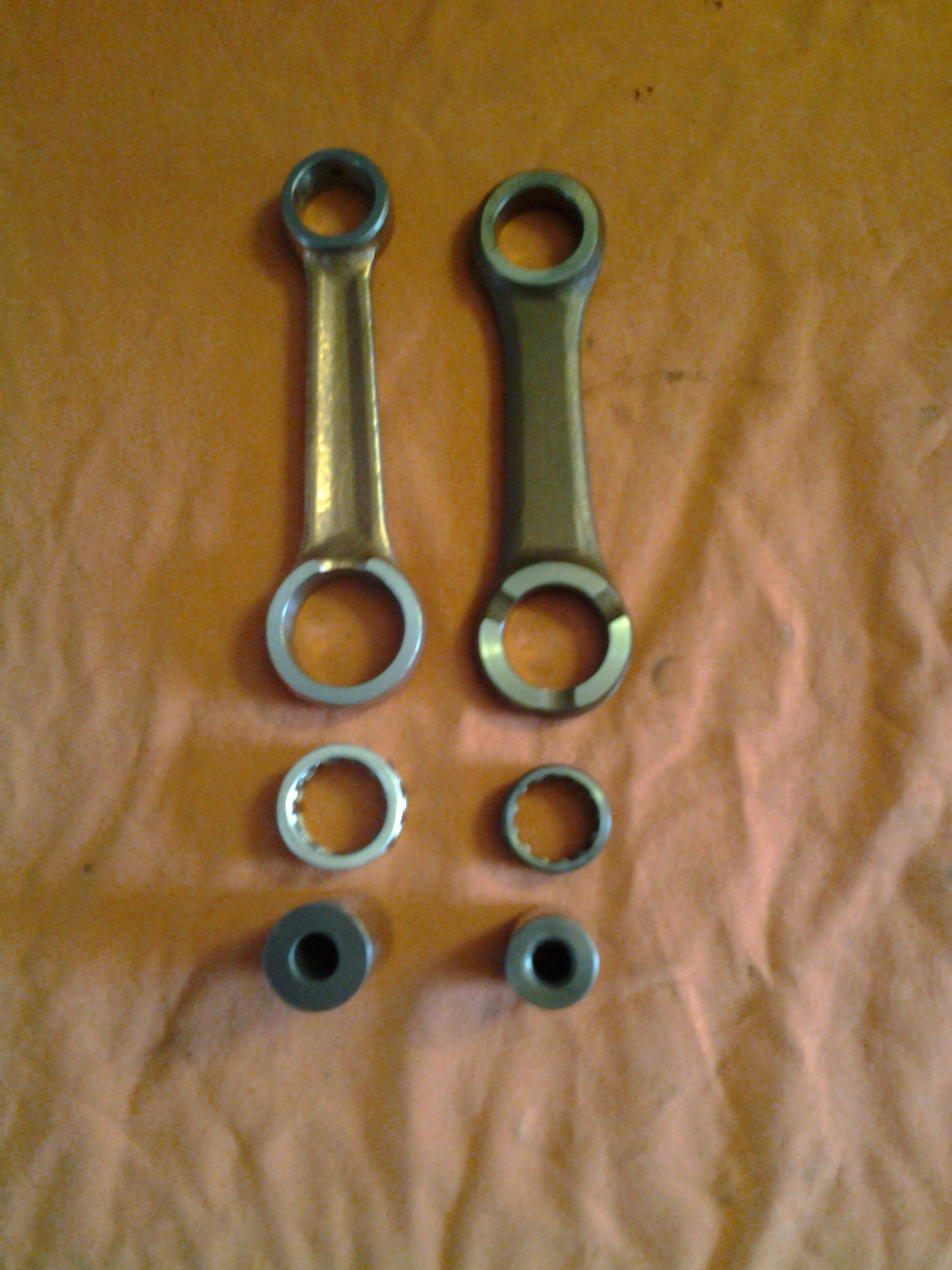 Links das 90er Pleuel nebst unteres Pleuellager und Hubzapfen, rechts das Sachs-Originalmaterial.