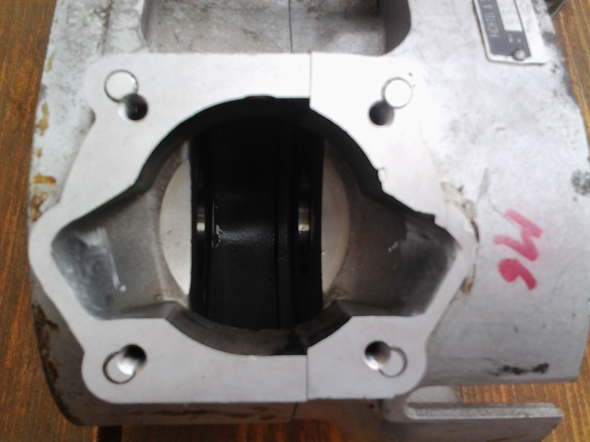 Da das 90er Pleuel mitlerweile angekommen ist, habe ich nun mal den EKF-Motor auseinandergenommen, um an die Kurbelwelle zu kommen. Nach dem Auseinanderpressen der Welle (dies war erstaunlicher Weise sehr, sehr stramm verbaut!!