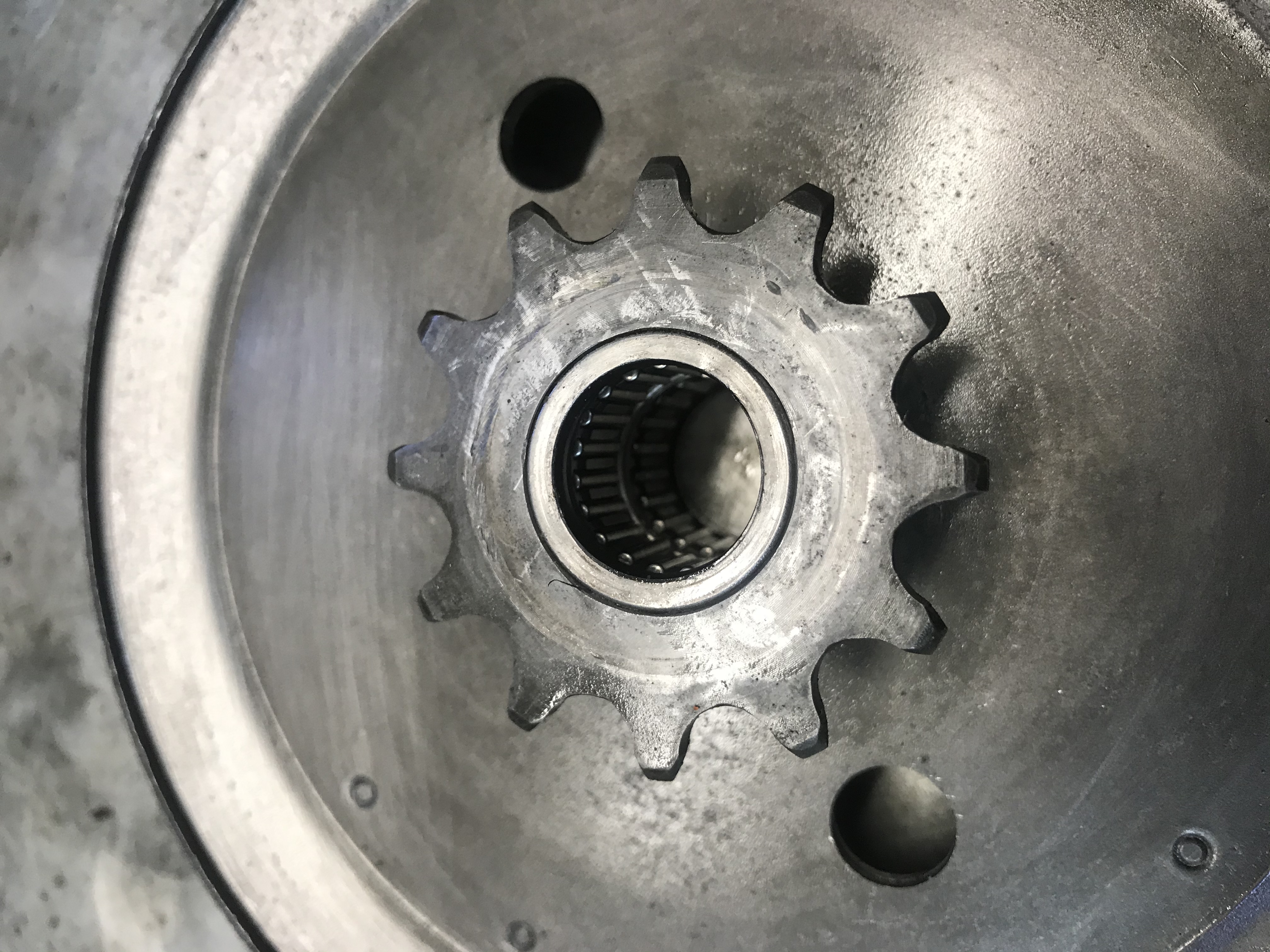 Das übelste an der Kiste ist, dass jemand die auf Keilriemenantrieb umgebaut hat und die Hauptwelle komplett ruiniert hat.