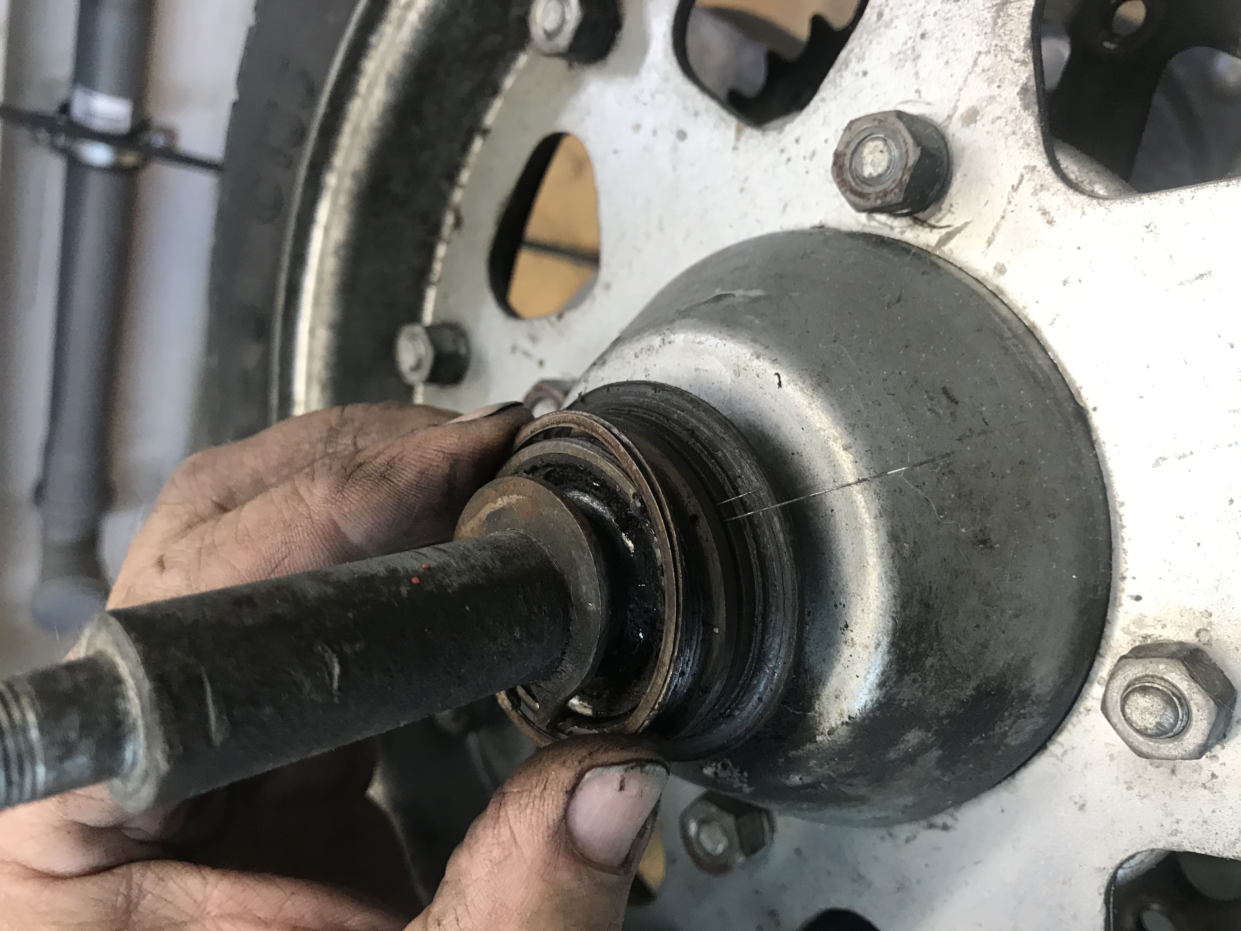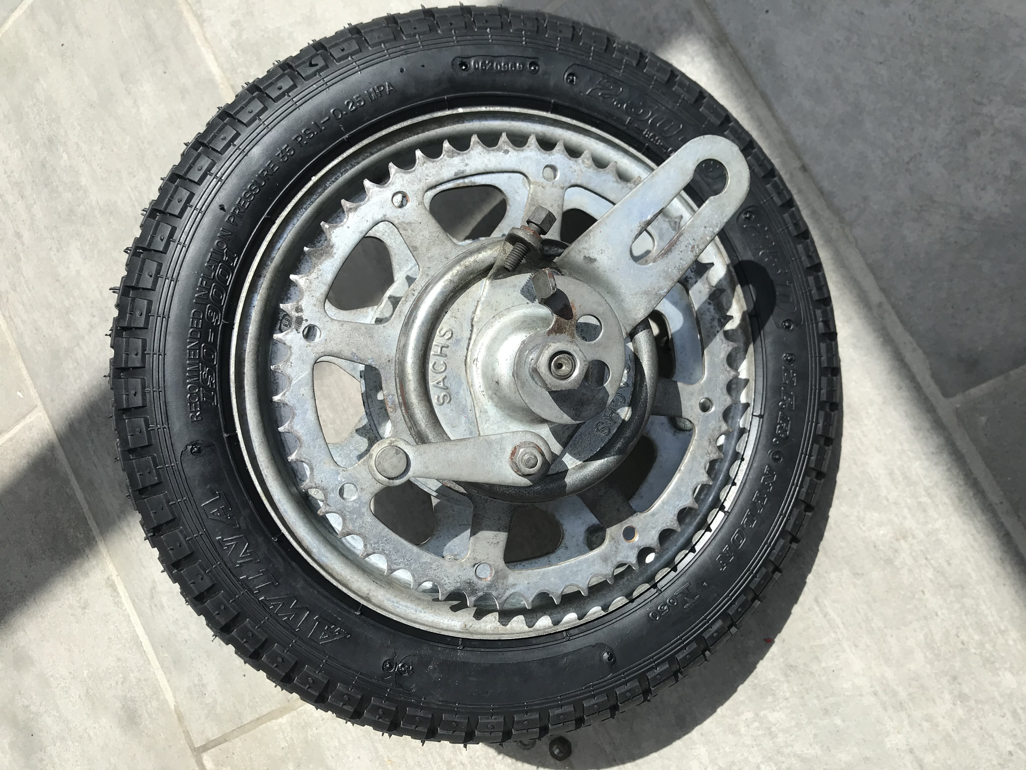 Hinterrad gesaeubert Lager neu gefettet und eingestellt. Neue Billigreifen spendiert.