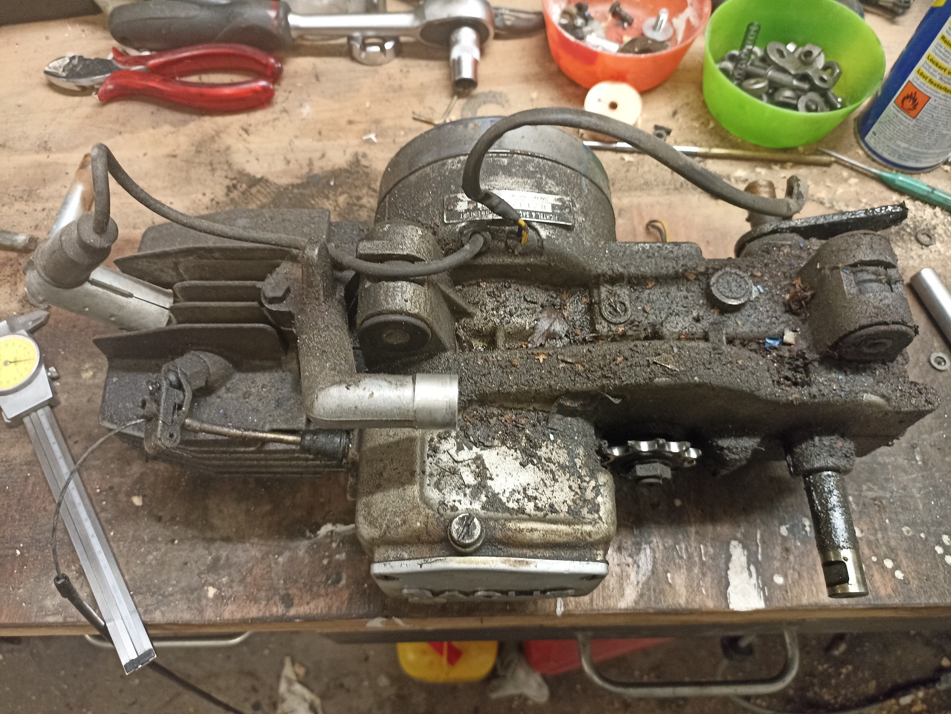 So. Motor ist raus. Man wundert sich ja wie viel Dreck an einem Motor kleben kann: