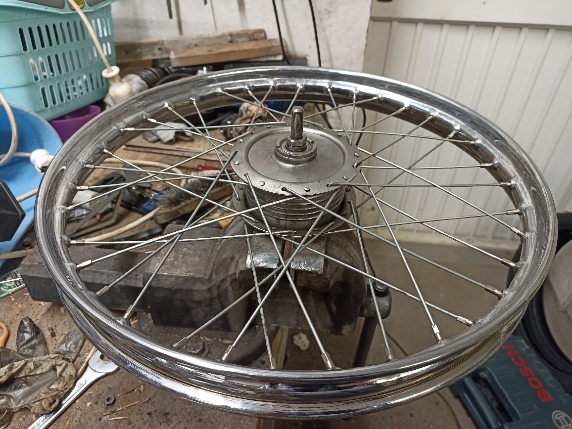 Hab es eingespeicht. Morgen zentrieren und neue Reifen, alte Schläuche und neue Felgenbänder drauf.
