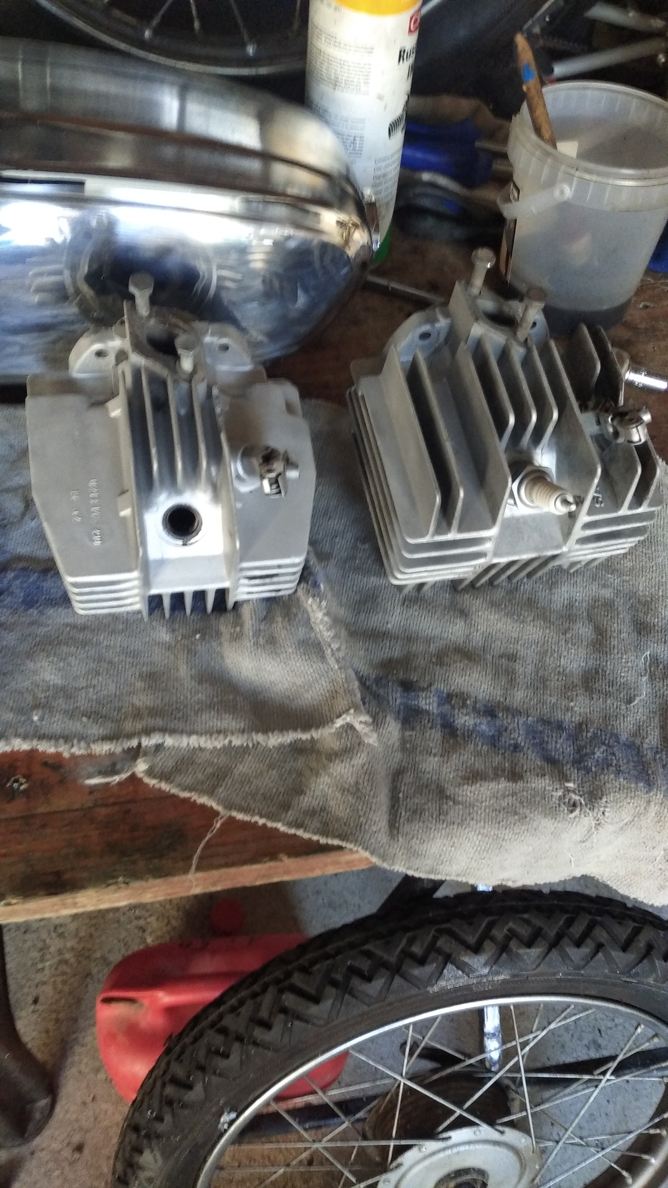 Seit langer Zeit geht es etwas weiter... Alle lackierten Teile sind mittlerweile gestrahlt und grundiert, der Tank ebenfalls vom Lack befreit. Zylinder vom Dreck der Jahrzehnte befreit und nun wird der Motor frisch gemacht... Aber: immer mit der Ruhe ;-)