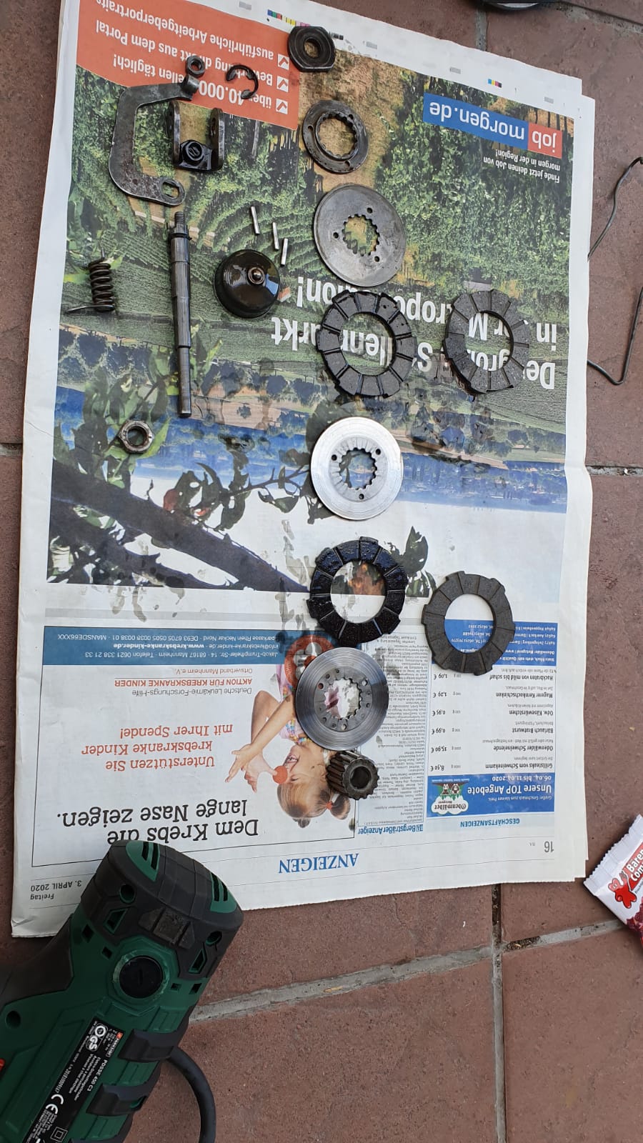Beim Bild seht ihr die alten und neuen Kupplungslamellen.