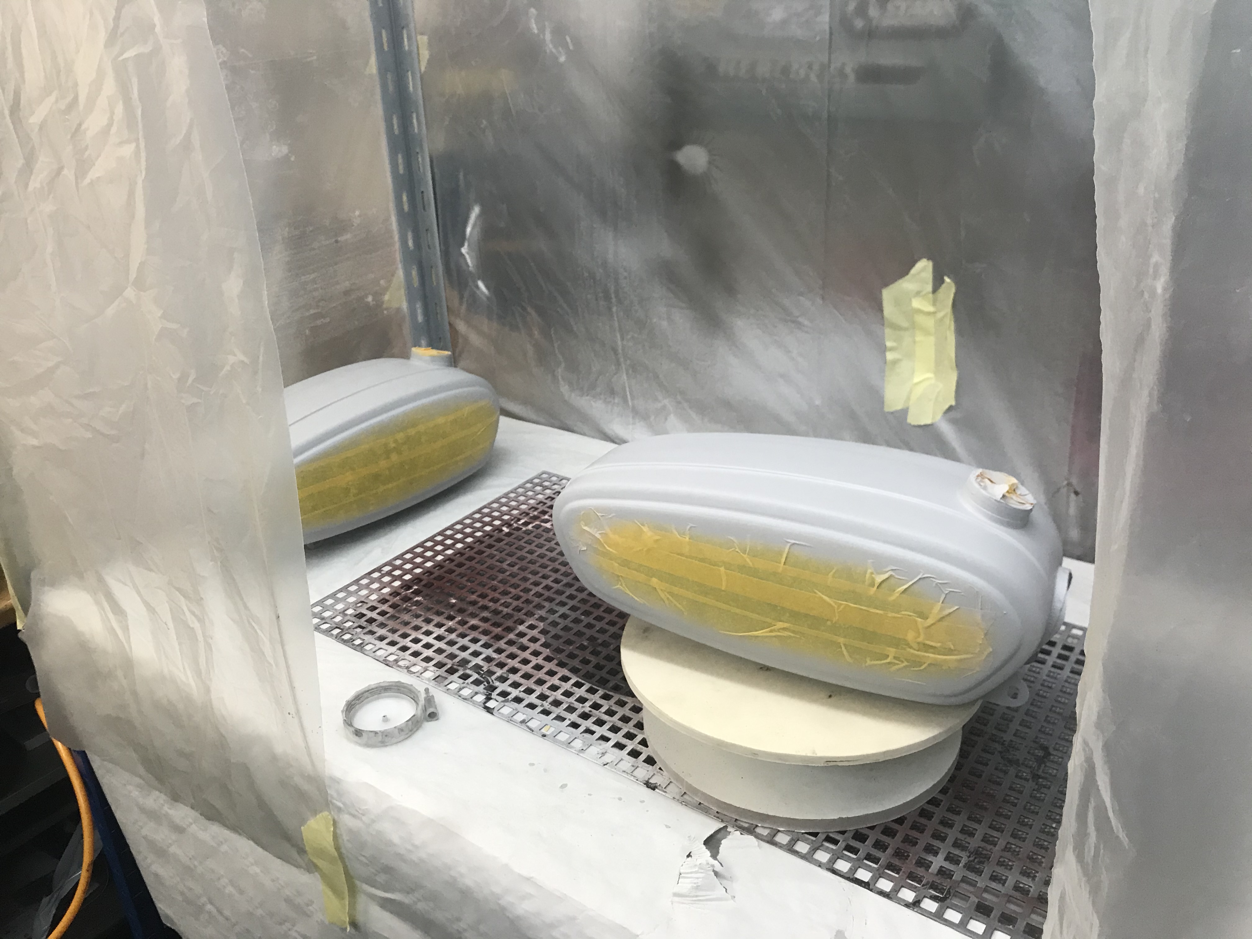 Normalerweise ist das obere Gestell gar nicht drauf, das Papier auch nicht, das nehm ich nur zu Schutz vor Öl und so her.