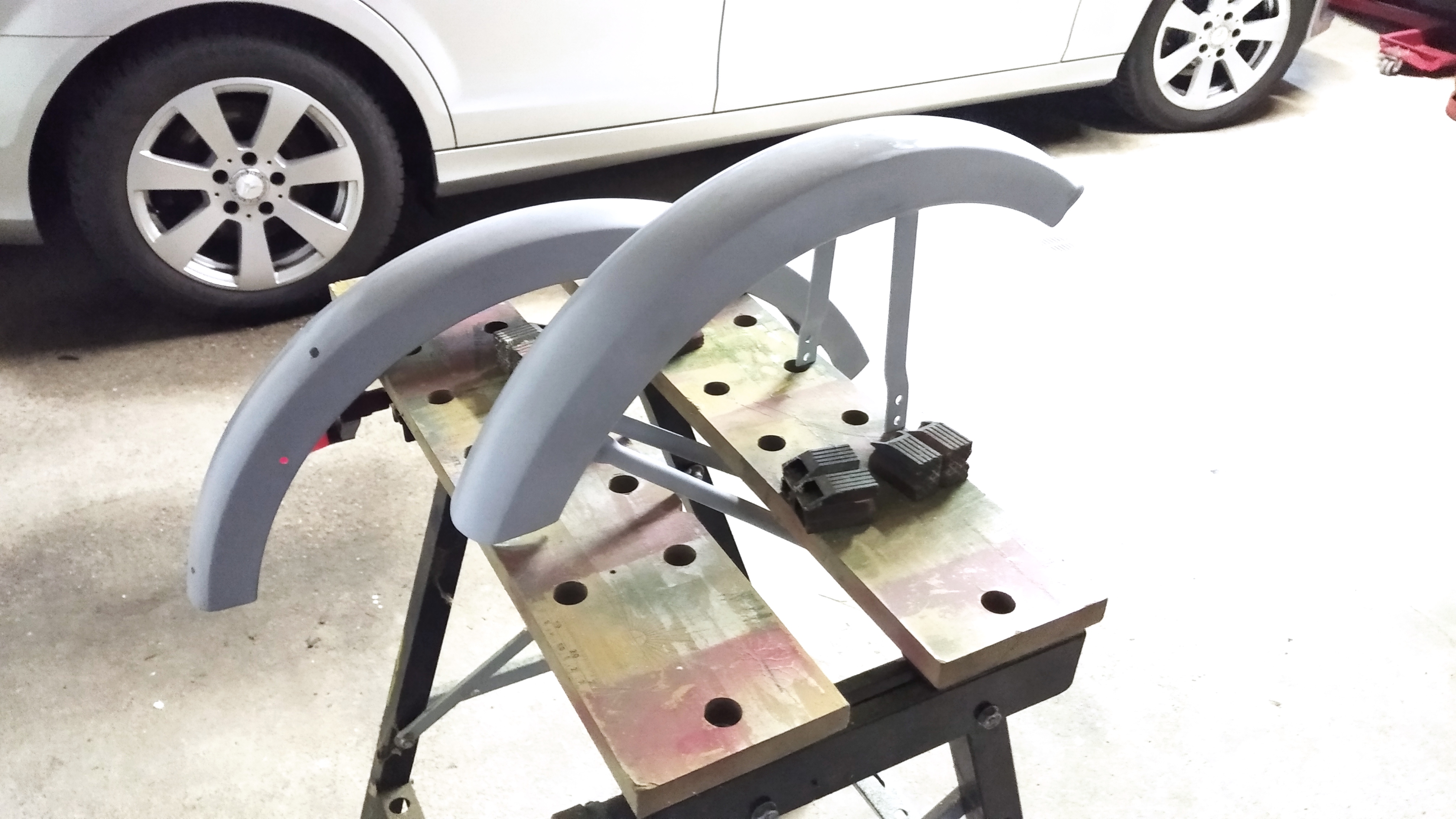 Nachdem ich jetzt die Schutzbleche komplett überarbeitet habe, incl. entrosten, spachteln, passende Löcher bohren usw. werde ich hoffentlich diese Woche noch lackieren können.. Die Bleche waren die letzte Baustelle.