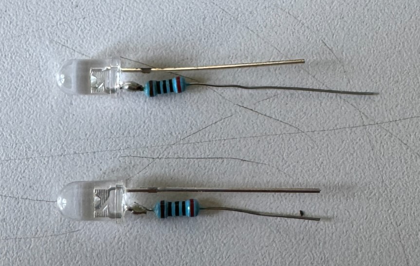 Ich habe aber alles auf LED umgerüstet, sogar die Cockpitanzeige mit diesen Dingern: LED weiß mit Vorwiderstand 150 Ohm.