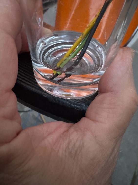 Die Kabel von der Lichtmaschine waren sehr oxydiert, eine Lösung aus Essig und Salz hat sie wieder schön blank gemacht. Danach noch mit Spüli neutralisiert und mit Wasser gespült.
