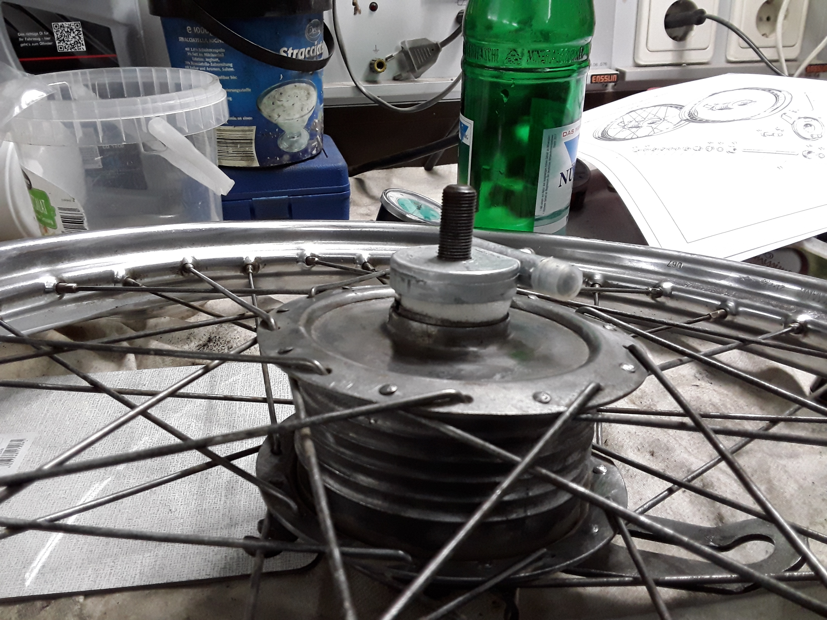 Zu deiner Vorgehensweise mit dem Tachoantrieb, das ist Pfusch, das Gehäuse besteht aus billigem Zinkguss und die Radlager bekommste so bestimmt nicht richtig eingestellt . Kauf dir einen anständigen Konusschlüssel, damit bekommst du dann auch alles auseinander und wieder zusammen.