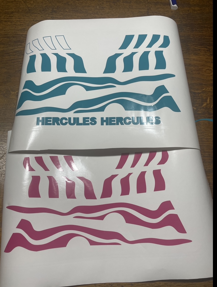 Ich hab aber keinen Drucker, der UV- und Benzinfest drucken kann, also werden aus einer Vektordatei (die ich selbst erstellt habe) die Konturen audgeschnitten .- und zwar pro Farbe.