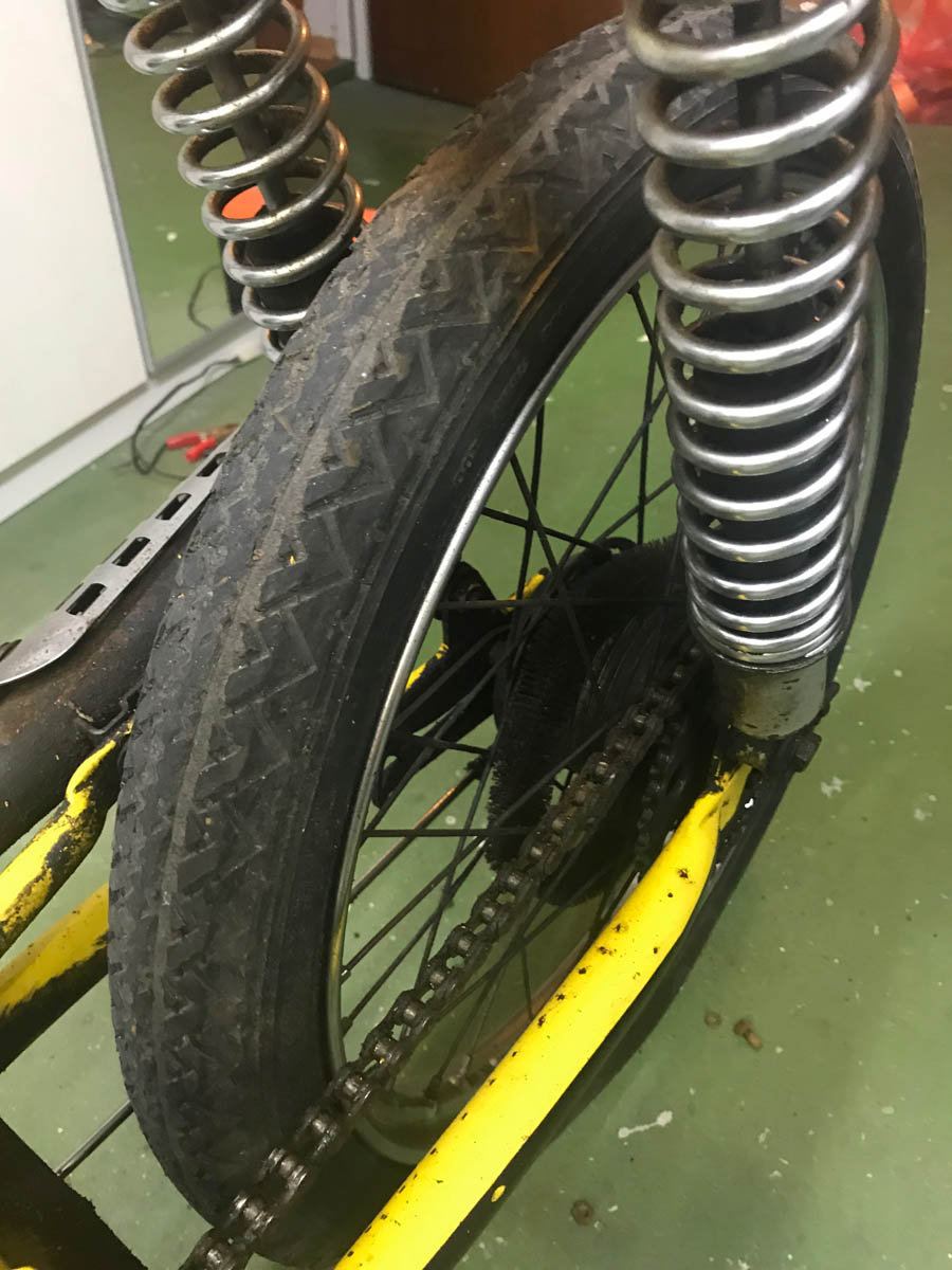 Die Schutzbleche teilweise total verdellert und eingerissen.