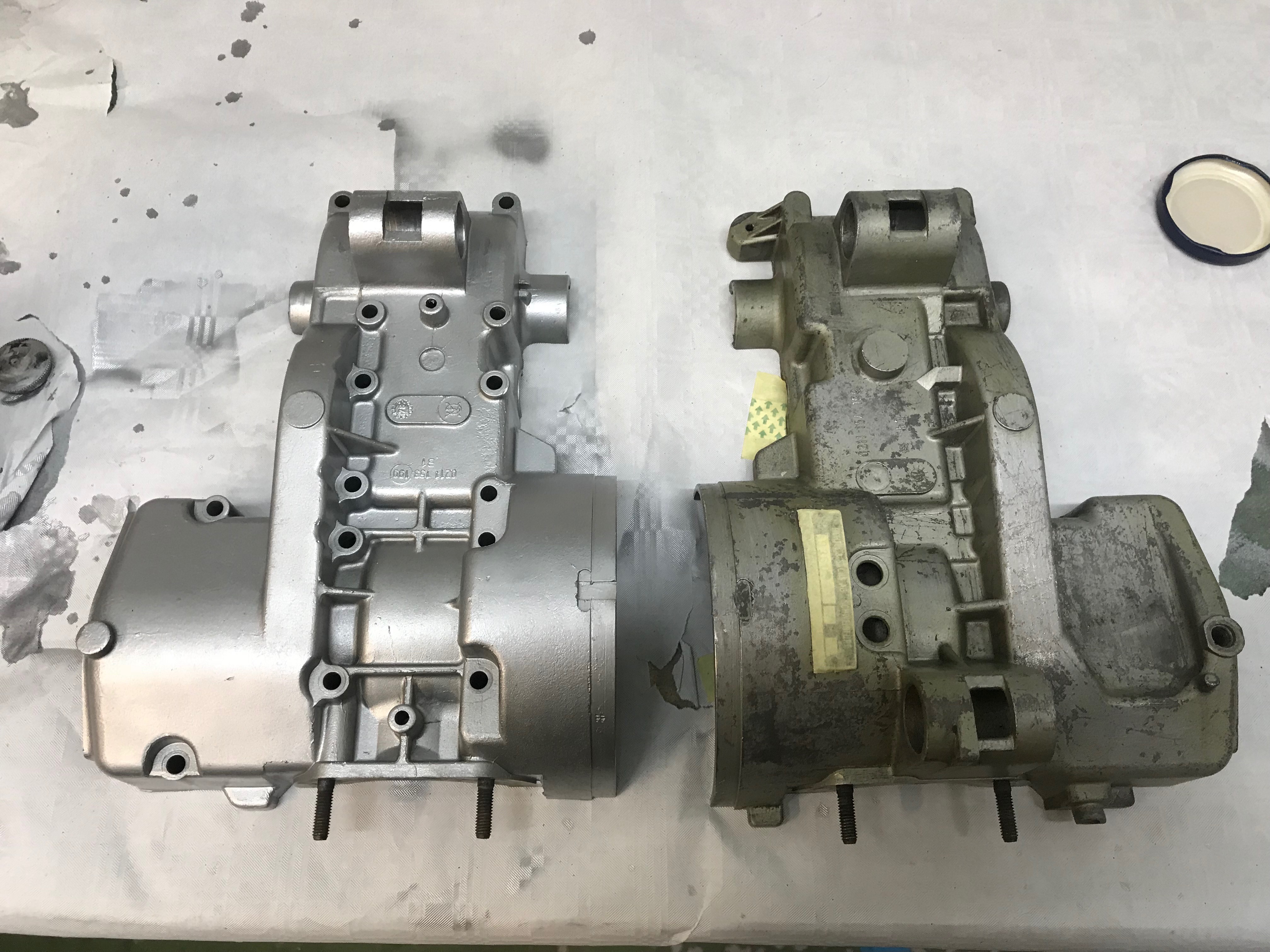 Das Gehäuse wurde gespalten, gesäubert und wie immer mit 2K Bremsenlack benzinfest lackiert.