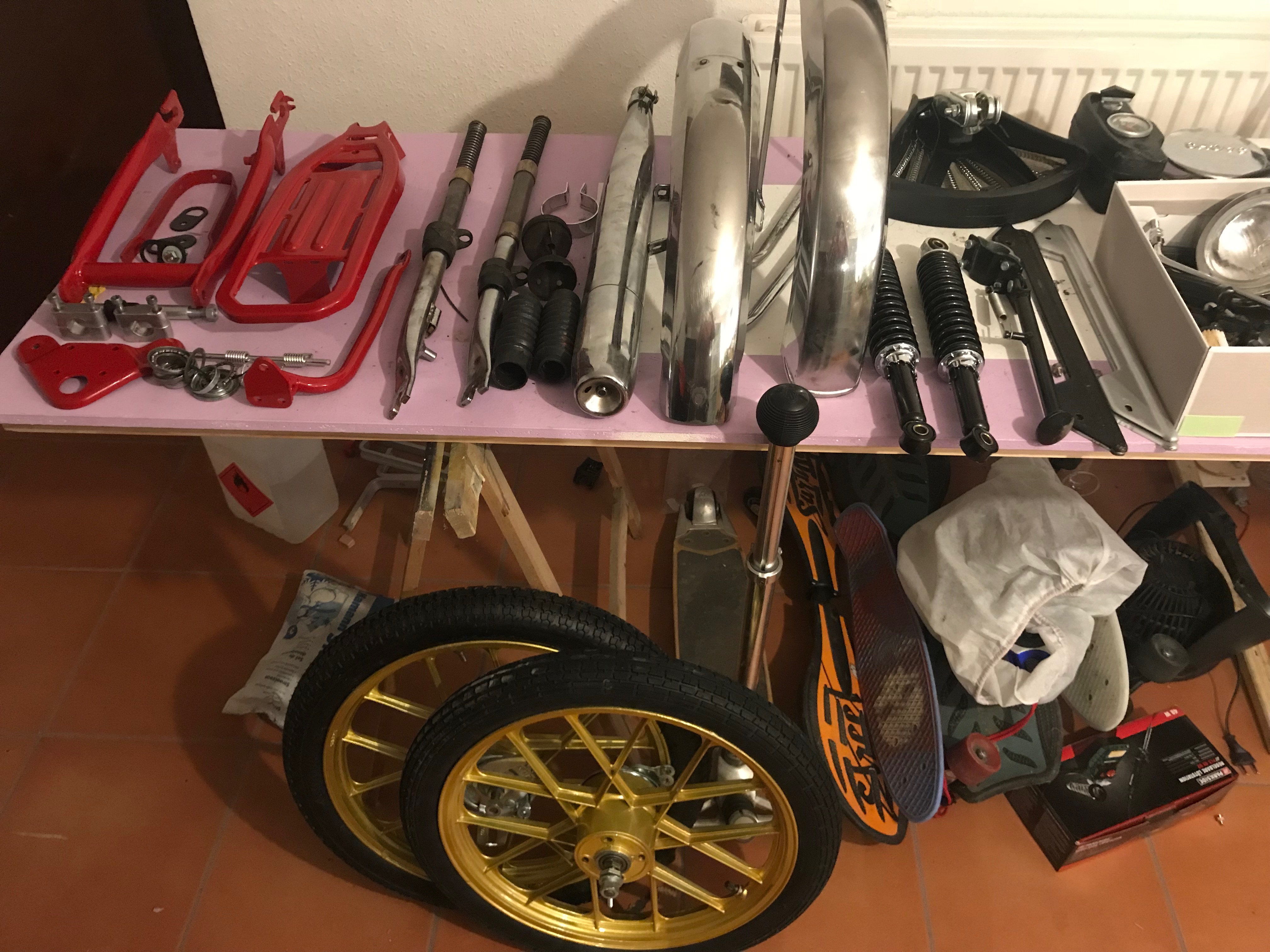 Und so langsam lag gegen Ende des Sommers ein Mofa in Teilen im Keller:
