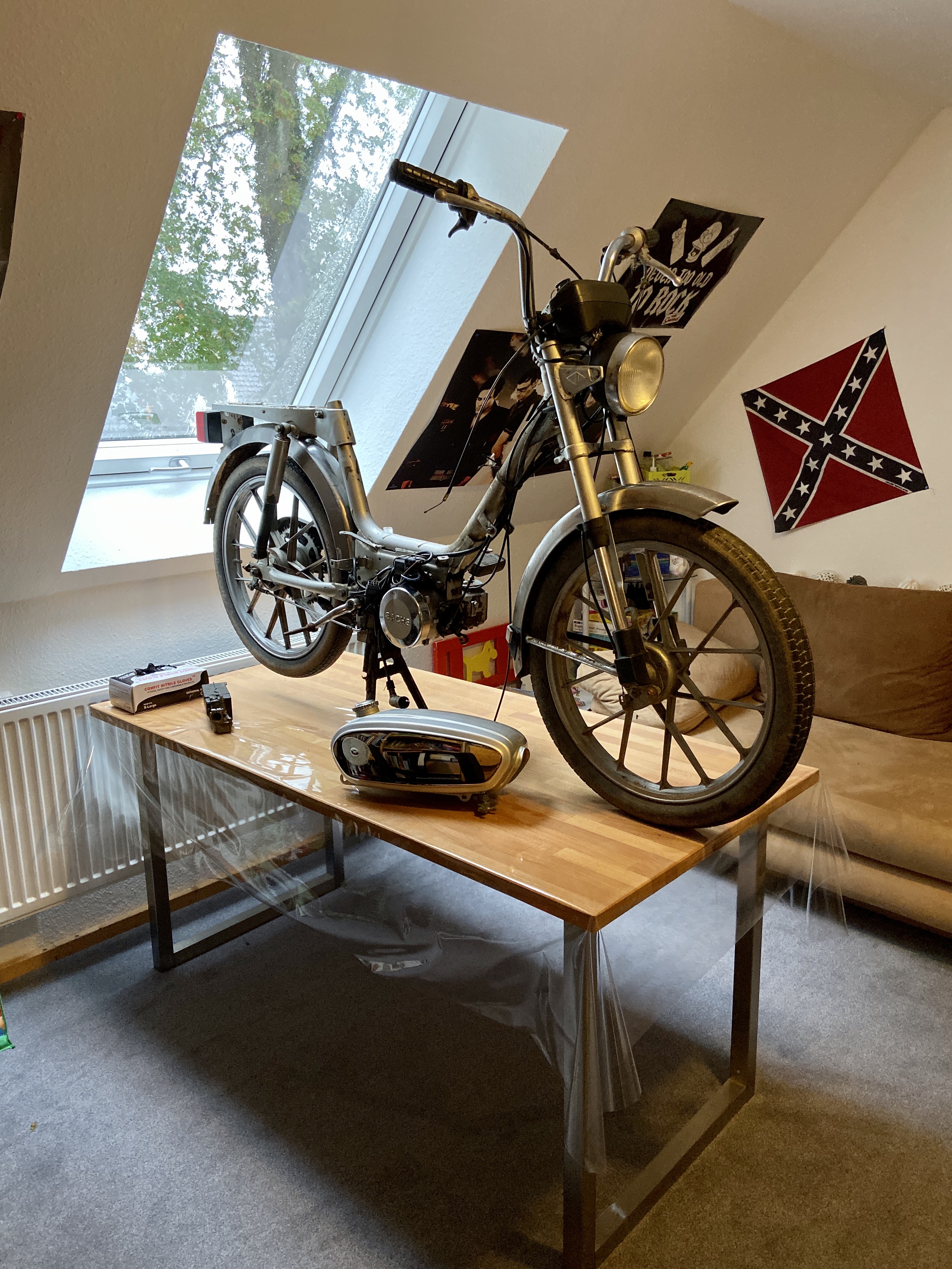 mal auf der rechten seite bei dir, der hintere bügel wo man trittplastik dranschraubt.... da hatte sachs diese regler dran . evtl hast loch gebohrt und kannst das zb nen winkel dranmachen