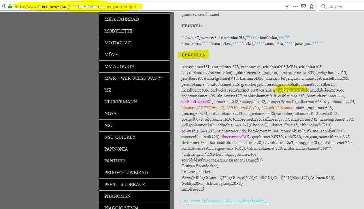 615 ist die interne hercules lacknummer