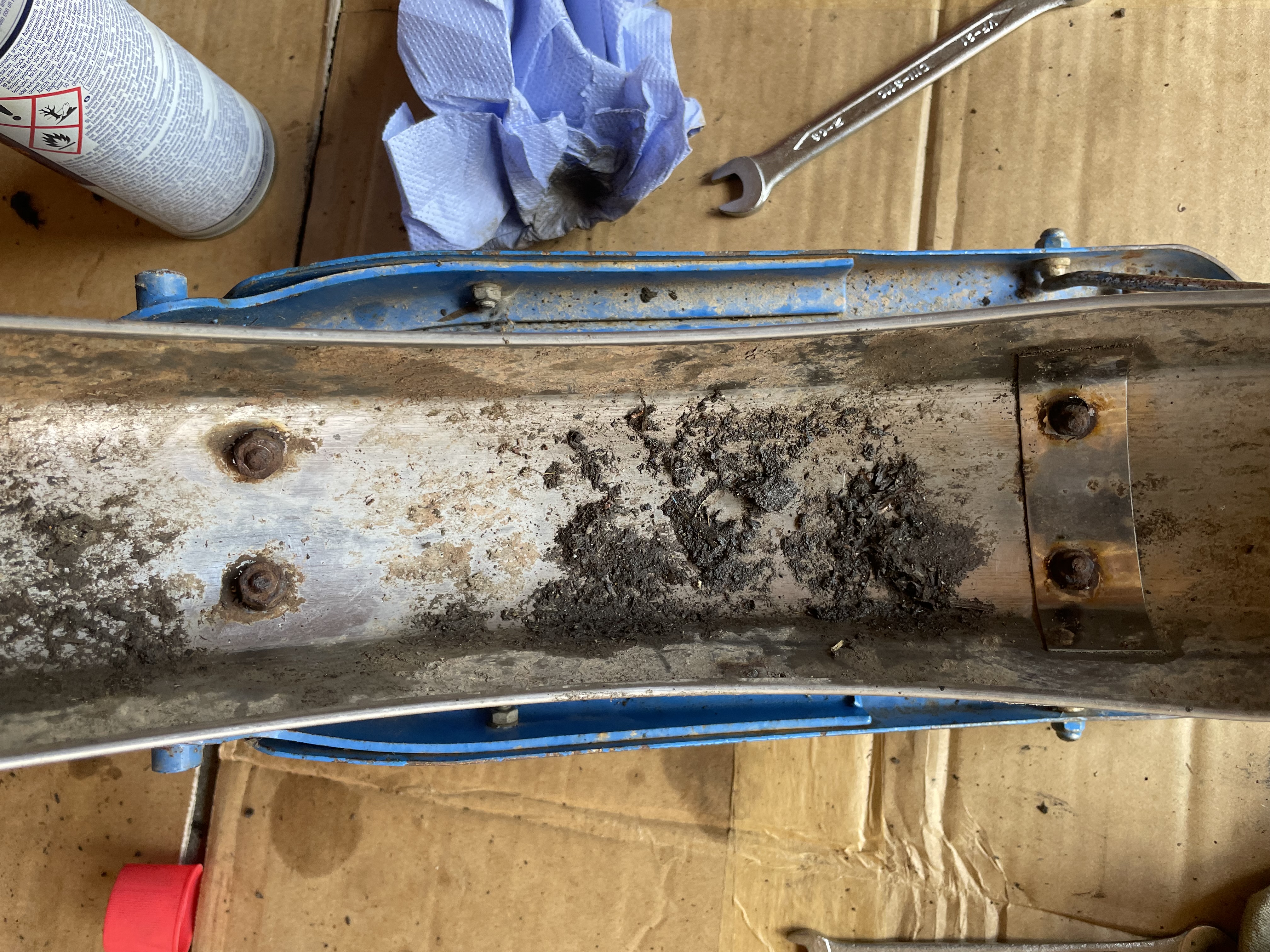 Rost an hinterem Schutzblech und Strebe für Auspuff