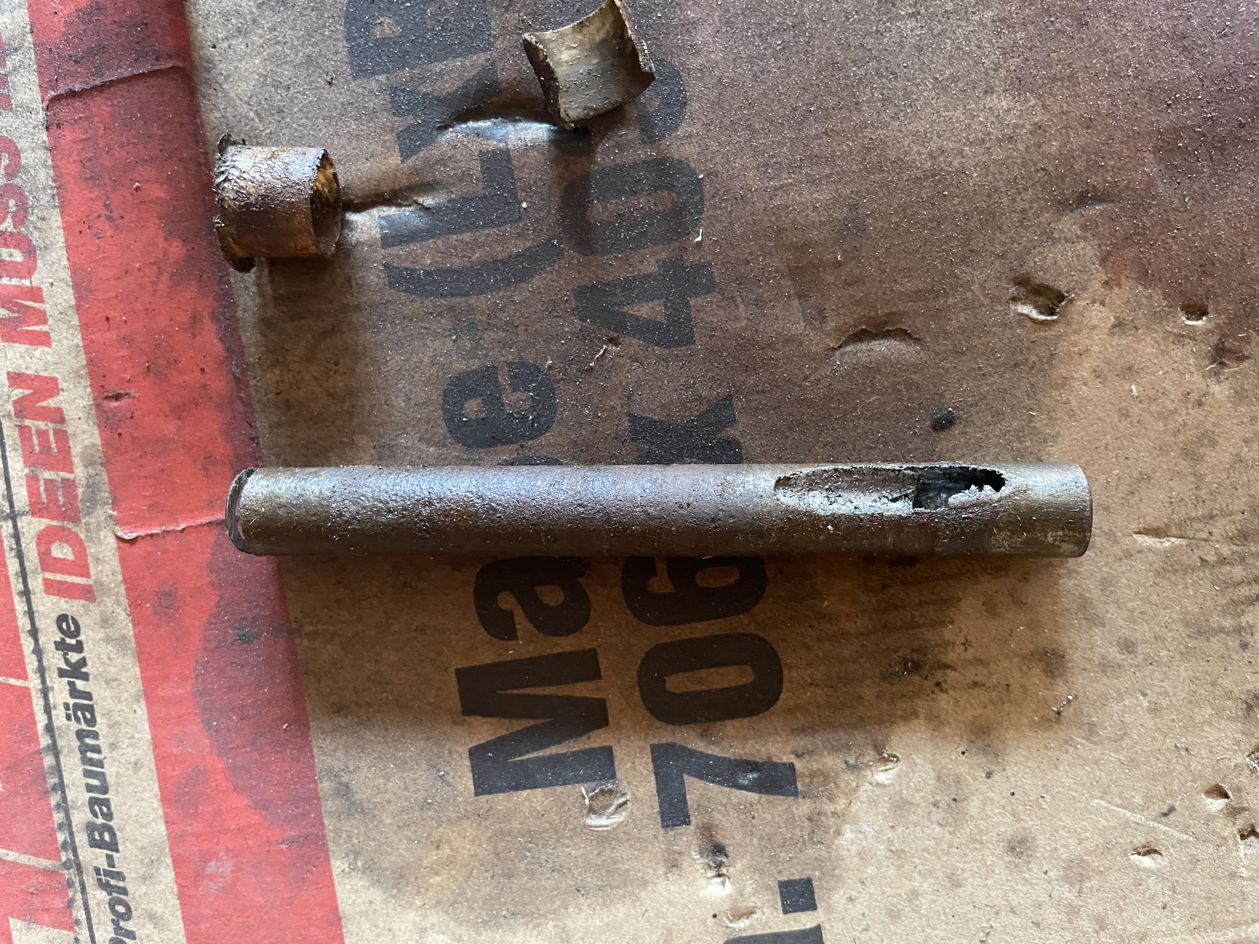 Den abgerissenen Bolzen vom Auspuff Halter.