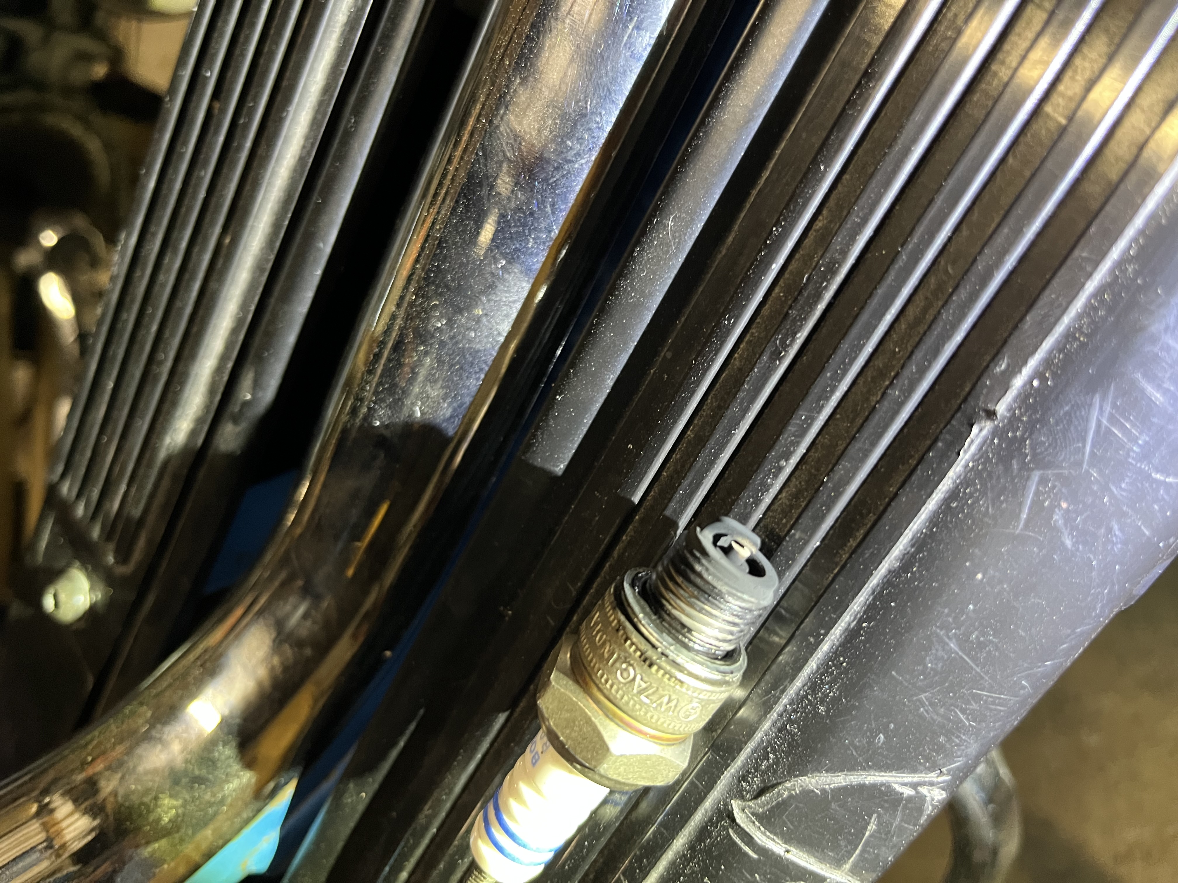 Es ist eine Bosch w7ac und 1kohm verbaut. Die Kerze ist etwas schwarz. Abstand ist 0,6