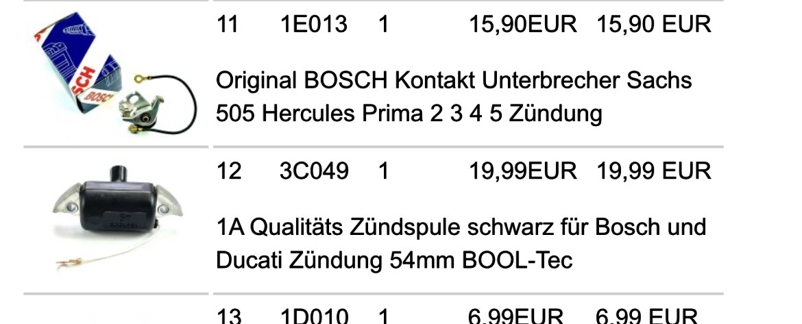 ich kauf da nur marke und keinen billig import, ist nur ne frage der zeit wenn der ärger losgeht, meist sind unterbrecher zuerst abgeschliffen oder zündspule nach paar wochen hin