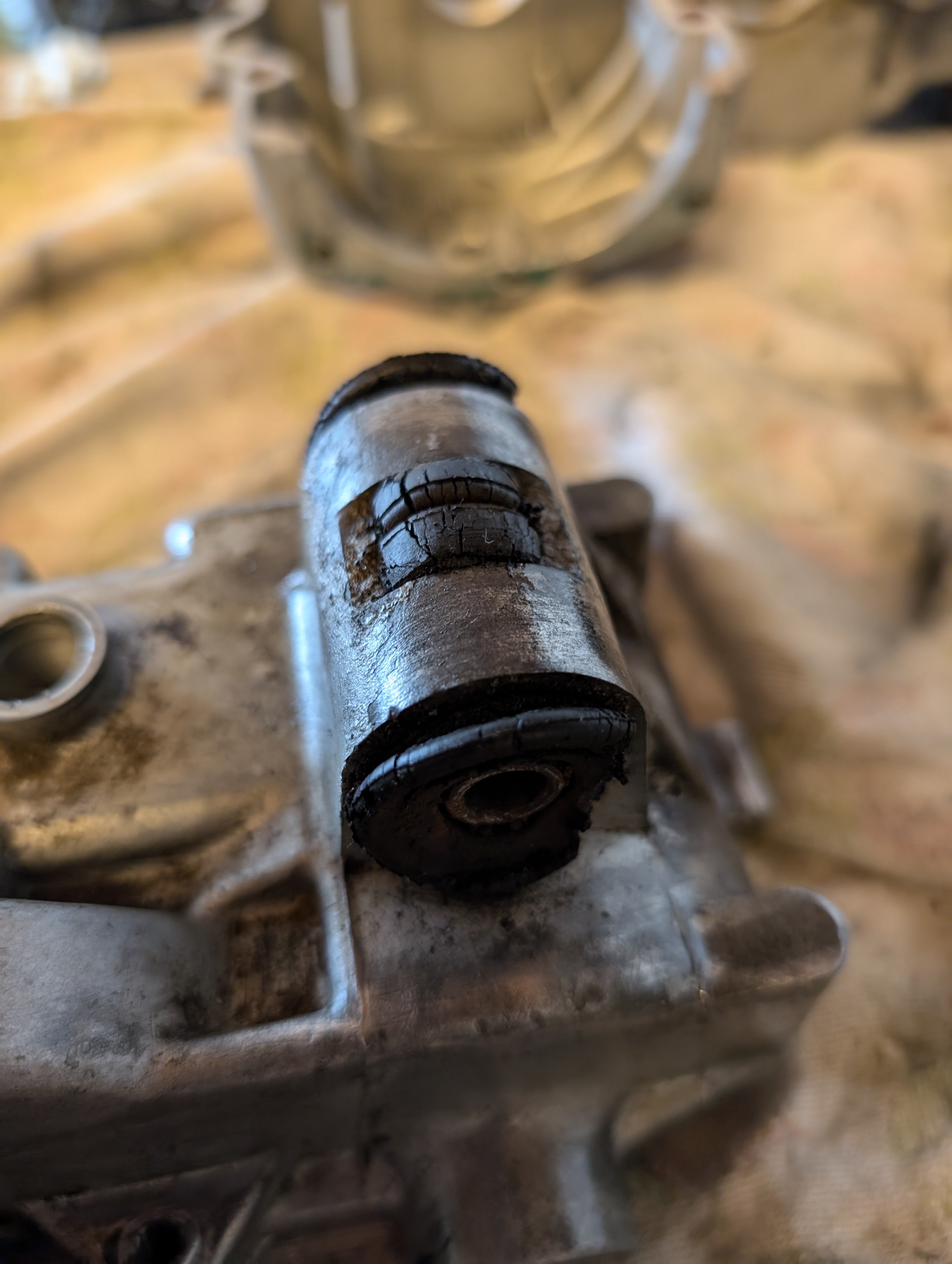 Zu den Gummilagerbuchsen, wenn die so aussehen wie deine wäre die letzte Möglichkeit diese auszubrennen, ist zwar eine sauerei aber besser als das Gehäuse zu beschädigen. Da müssen eh neue rein und dazu benutzt man Reifenmontagepaste oder Silikon.