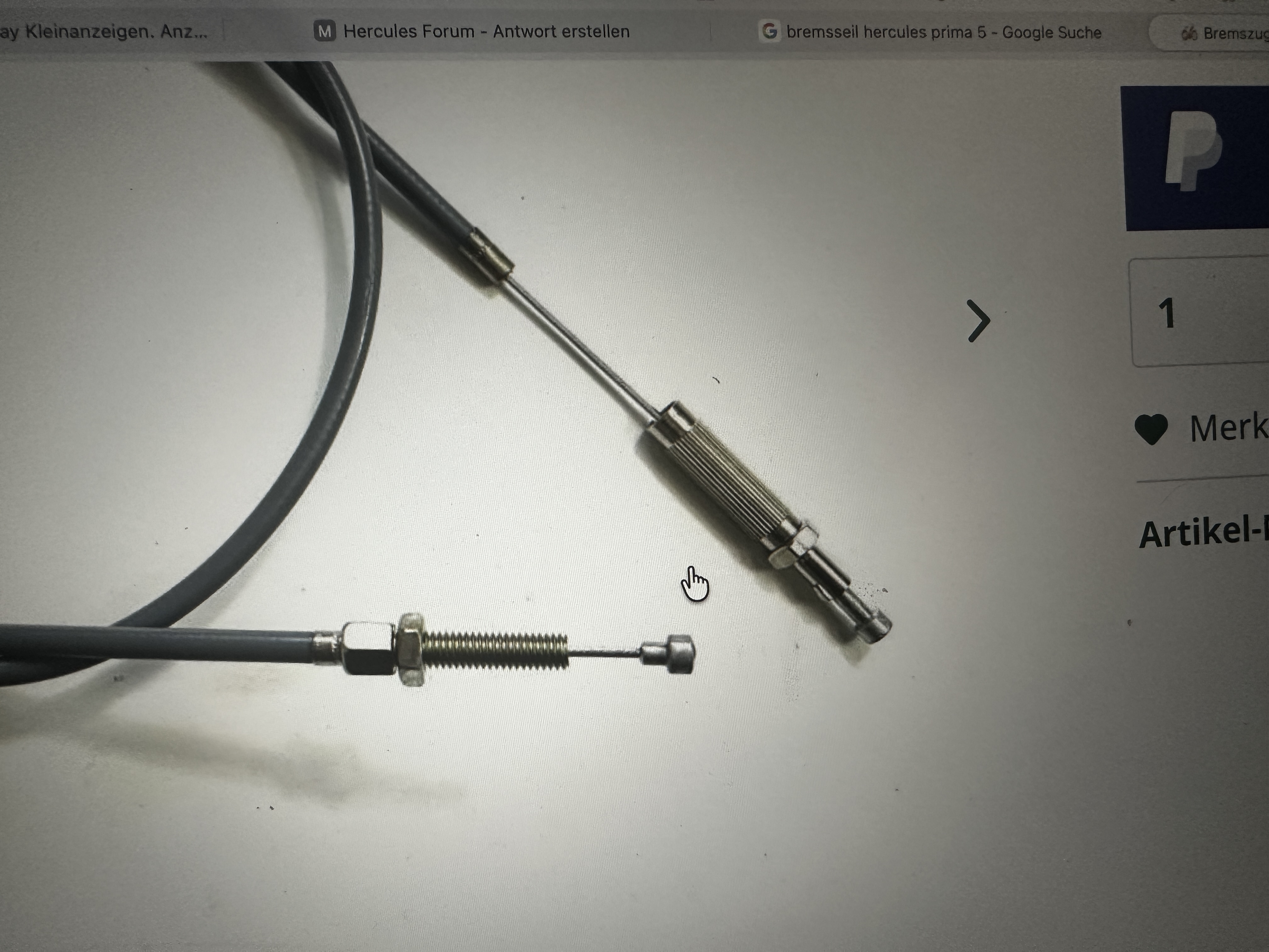 Bremsseil vorne: Ich benötige ein Bremsseil mit zwei Gewindeschrauben an den Enden. Einmal am Griff oben und einmal wie auf dem Bild. Leider finde ich nur solche Bremszüge wie auf dem Bild. Wenn jemand einen Tip hat wo ich das bestellen kann?
