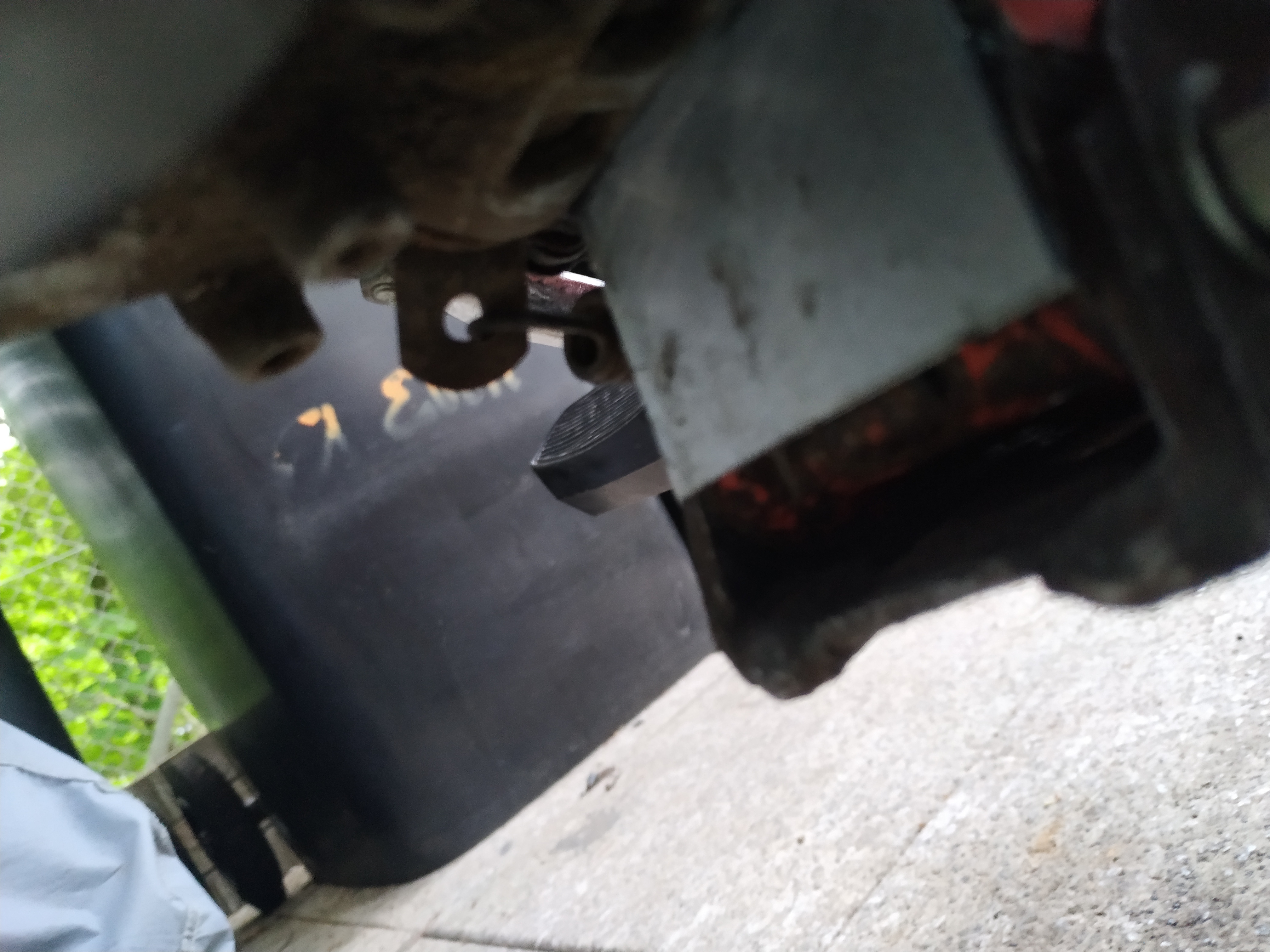 Also ich habe es jetzt auseinander gebaut. Bilder sind mit angehängt. Die eine Schraube habe ich schon gegen eine Edelstahlschraube getauscht, da die alte schon einmal gebrochen war (die Originale). Man sieht auf den Bild, dass die Edelstahlschraube auch schon leicht verbogen ist.