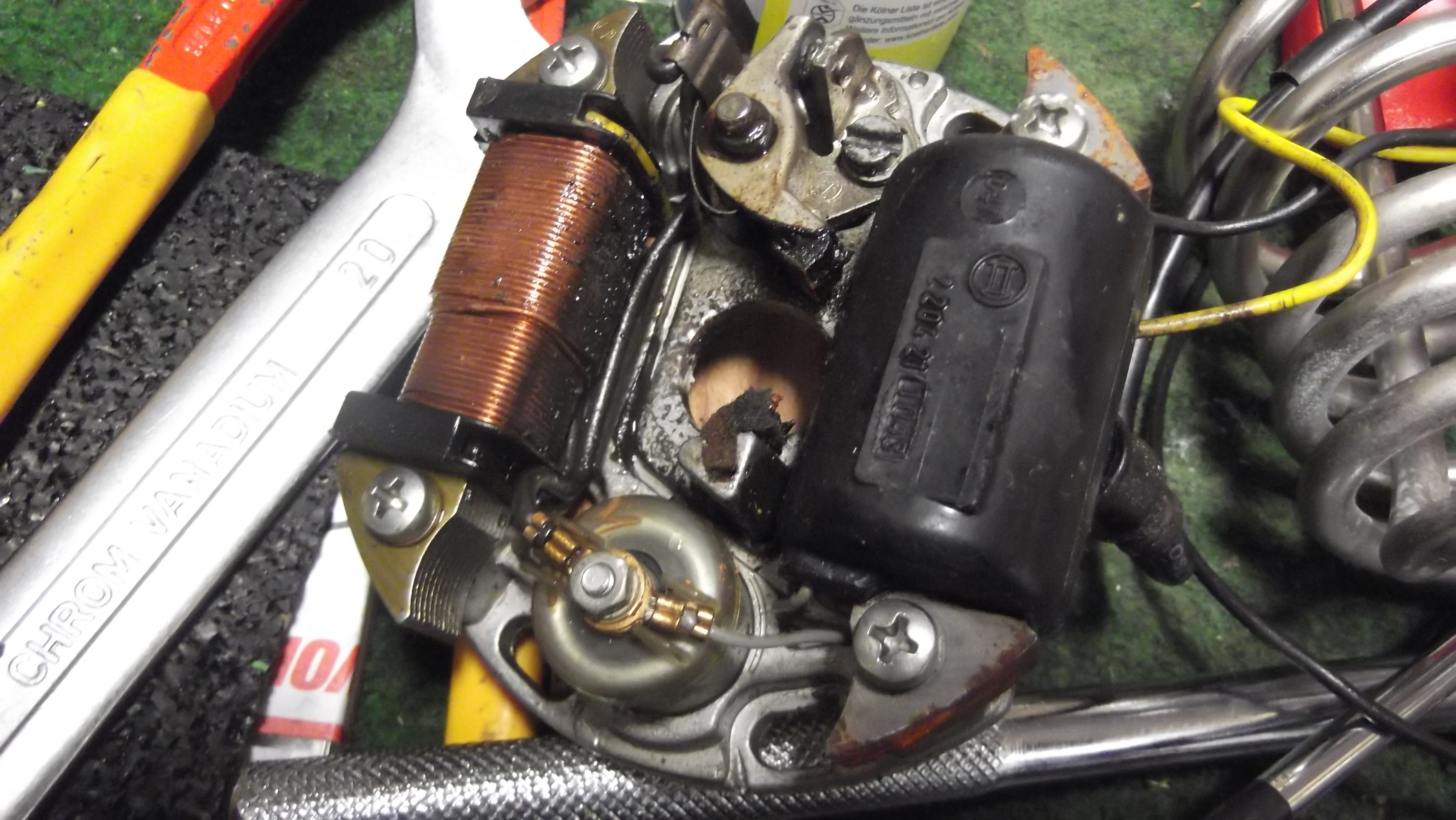 leider habe ich nicht soooo die Ahnung von der Zündung, jedoch würde ich zuerst sicherstellen, dass weder Zündkerze, noch der Kerzenstecker die Ursache ist, d.h. ggfl. beide Teile auswechseln...................kommt denn überhaupt Strom durchs Zündkabel? Kerzenstecker dazu abziehen und das Kabelende ca. 1cm von der Motormasse halten und "starten: Kommt ein Funken, ja oder nein?