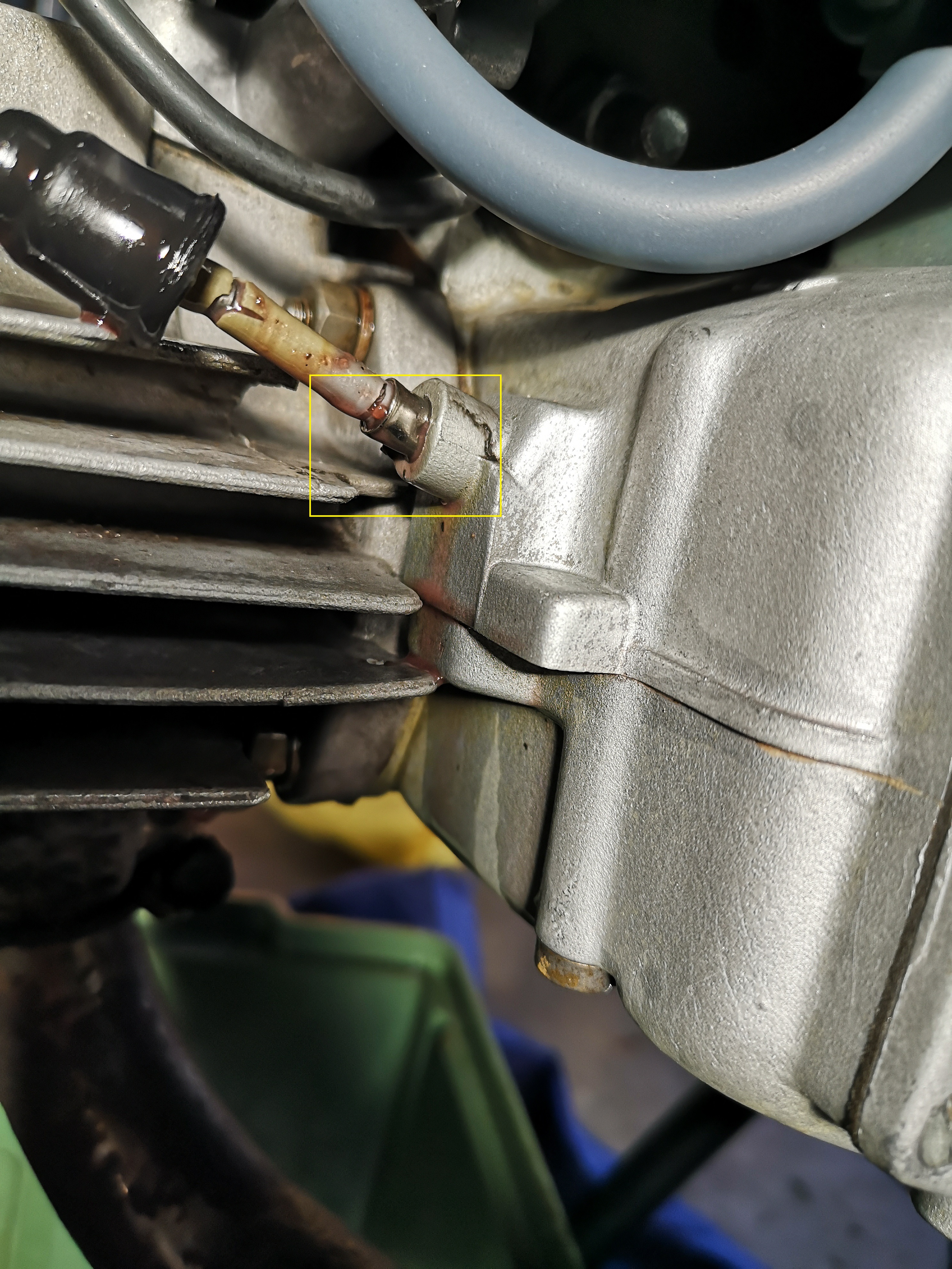 Ebenfalls kommt Öl aus dem Markierten Bereicht wo der Bowdenzug in das Getriebe geht, trotz der Gummikappe.