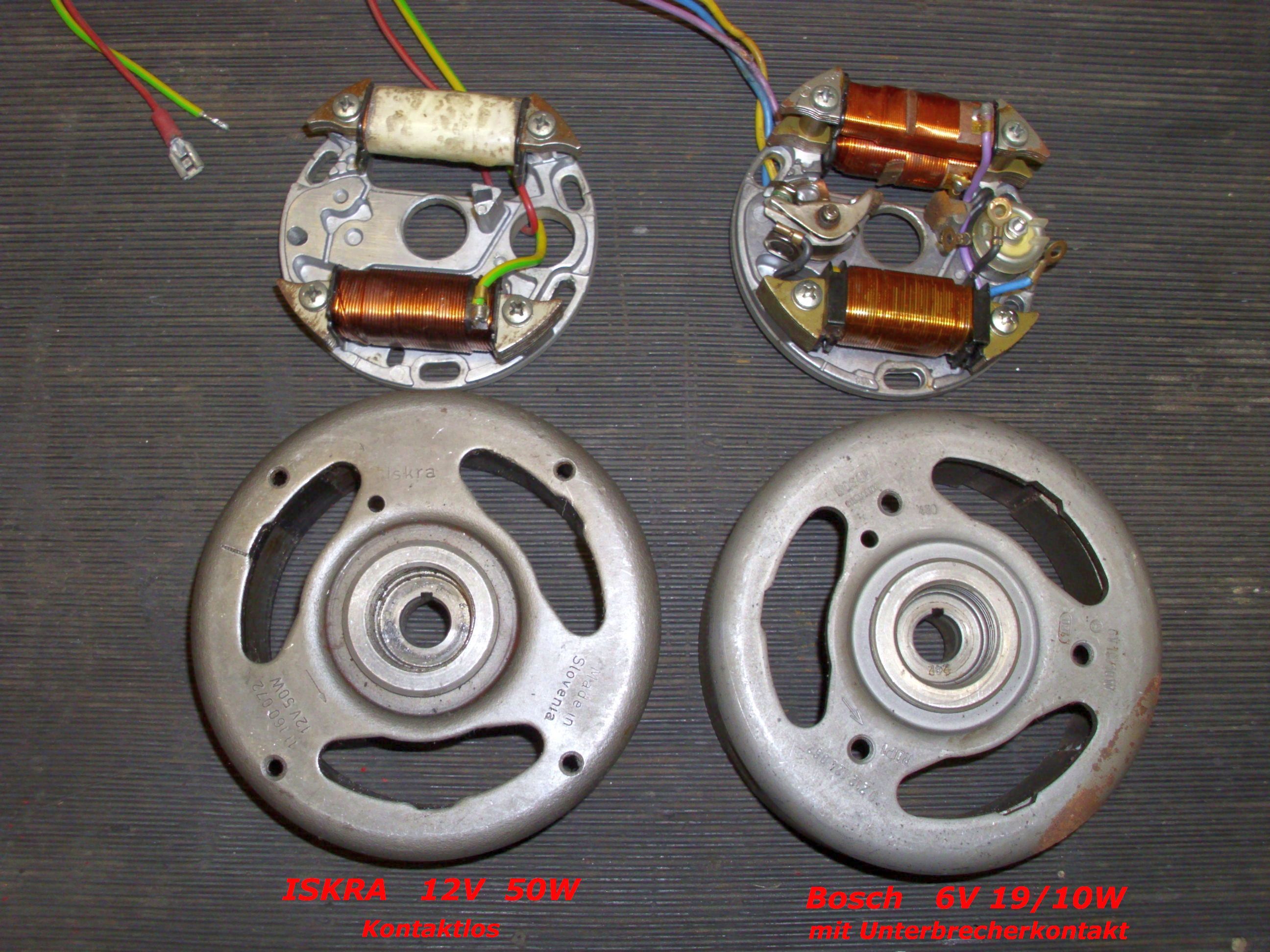 Ich möchte gern die Original-Schwunglichtmagnetzündung 6V 19/10W austauschen gegen eine kontaktlose Iskra 12V 50W.
