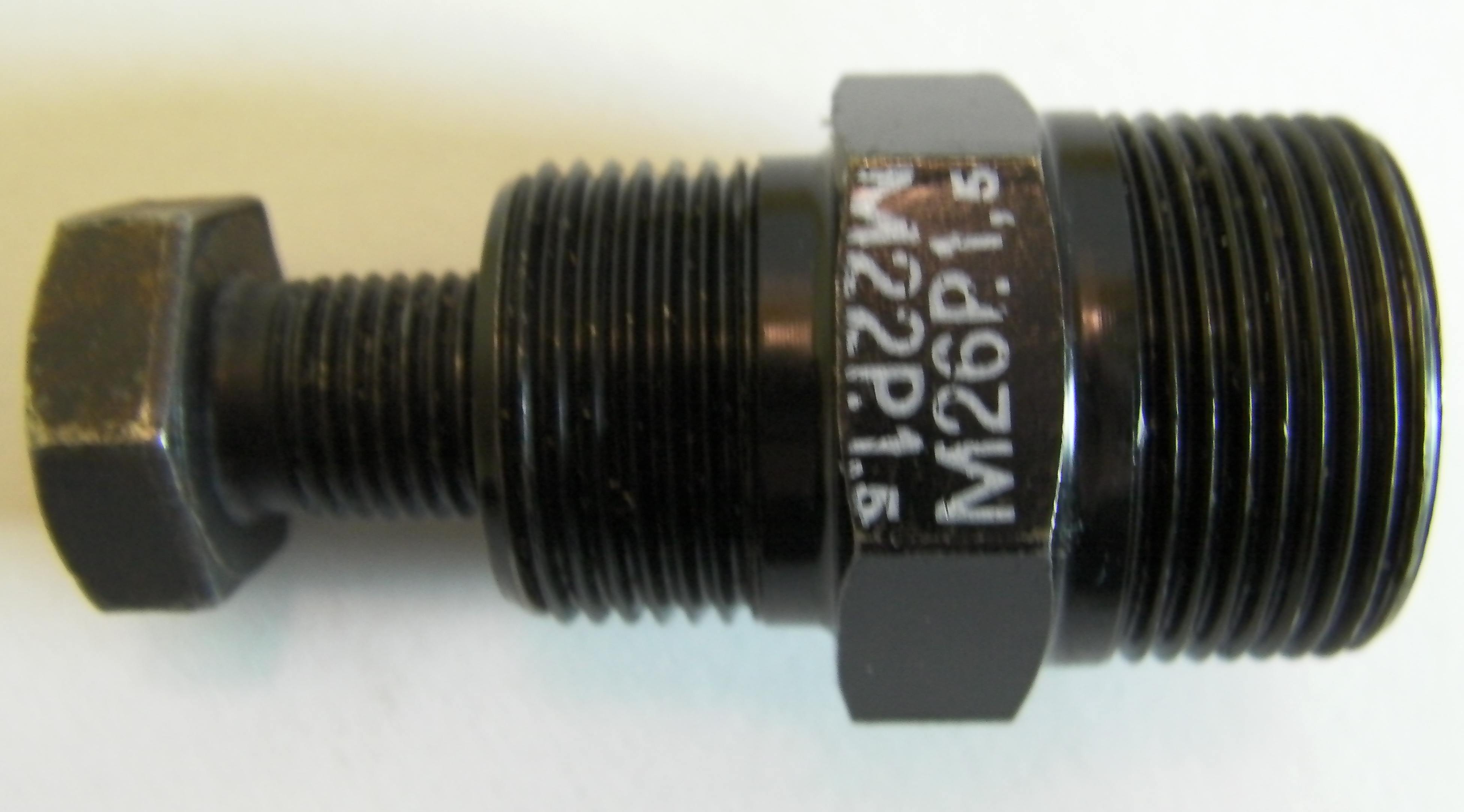 Für das BOSCH-Schwungrad benötigst du einen 26x1,5 Abzieher. Dabei empfiehlt sich gleich die Variante 22x1,5 und 26x1,5 zu kaufen. Dieser sieht so aus: Mit einem normalen "Mehr"-Bein-Abzieher ist der Gefahr sehr hoch, dass man das Schwungrad verwuchtet, was dann schnell zum Kurbelwellenlagerschaden führen kann etc..