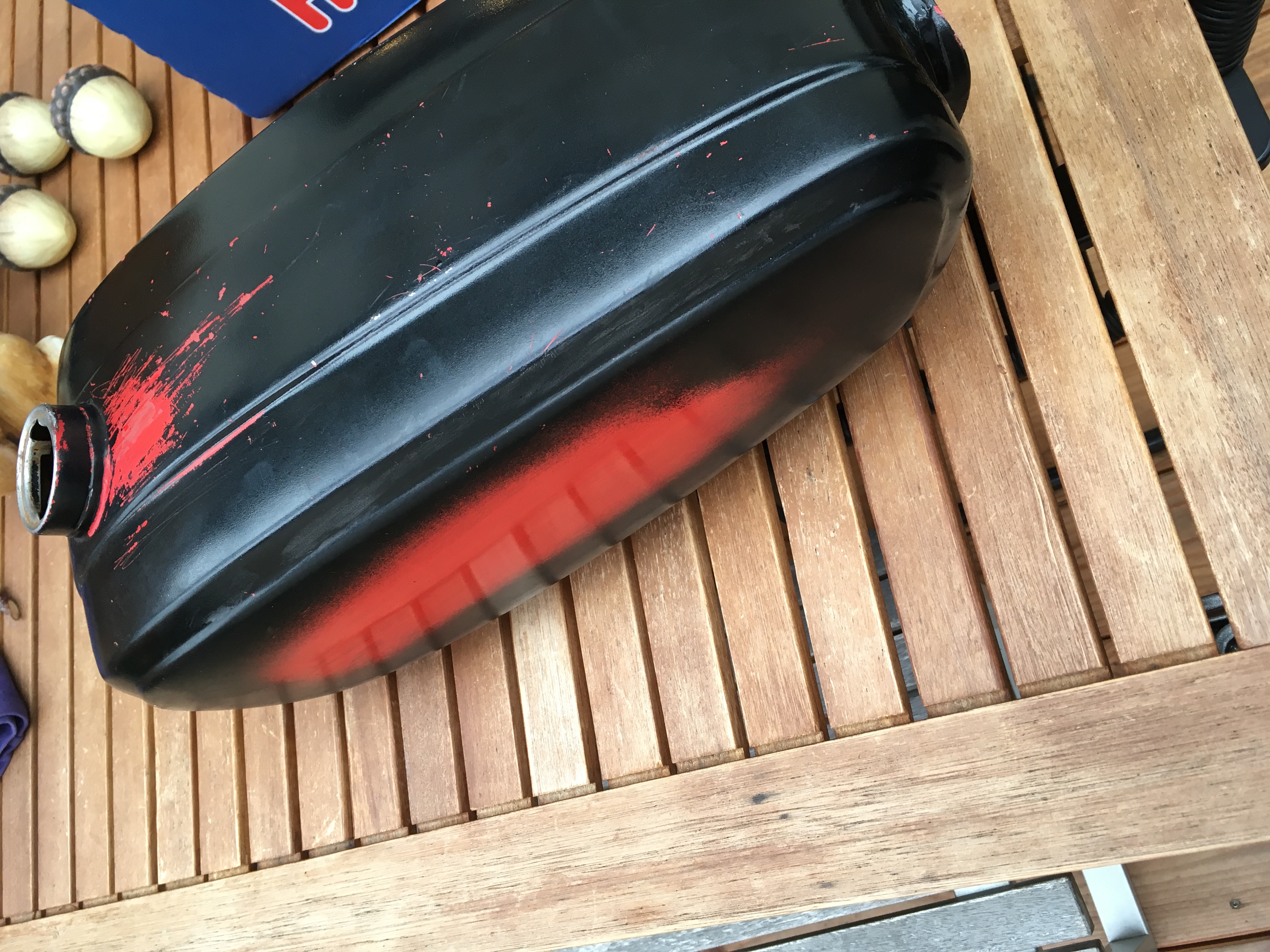 Wegen dem Tank, ich finde er sieht ja so schon mega cool aus ;D. Villeicht wird er noch lackiert. Eigentlich war ja Sandstrahlen der Plan aber ich hab keinen Termin mehr bekommen. :thumbdown: