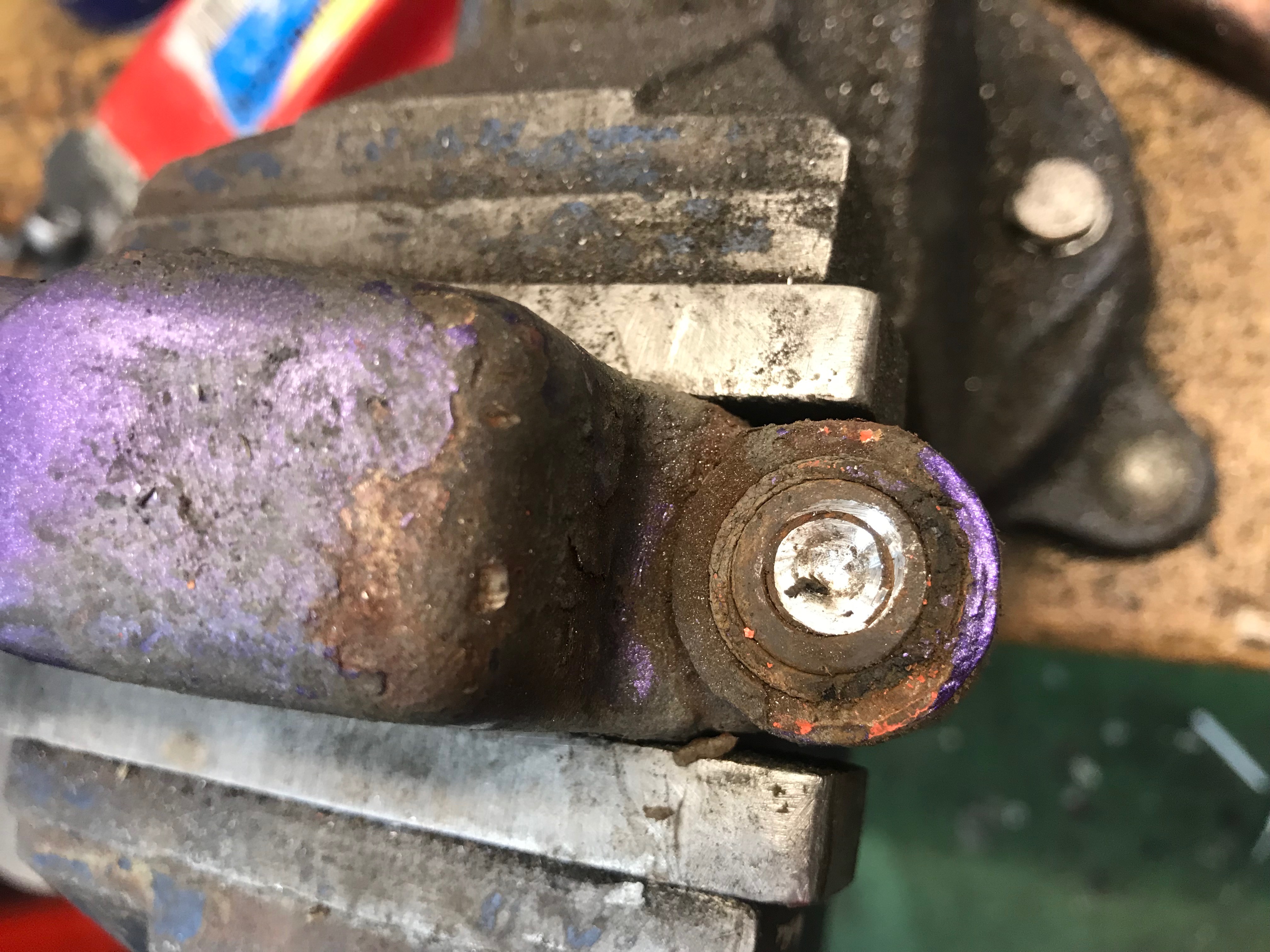 Als erstes habe ich die Staenderaufnahme wieder in einen Normalzustand versetzt. Der Bolzen war fest.