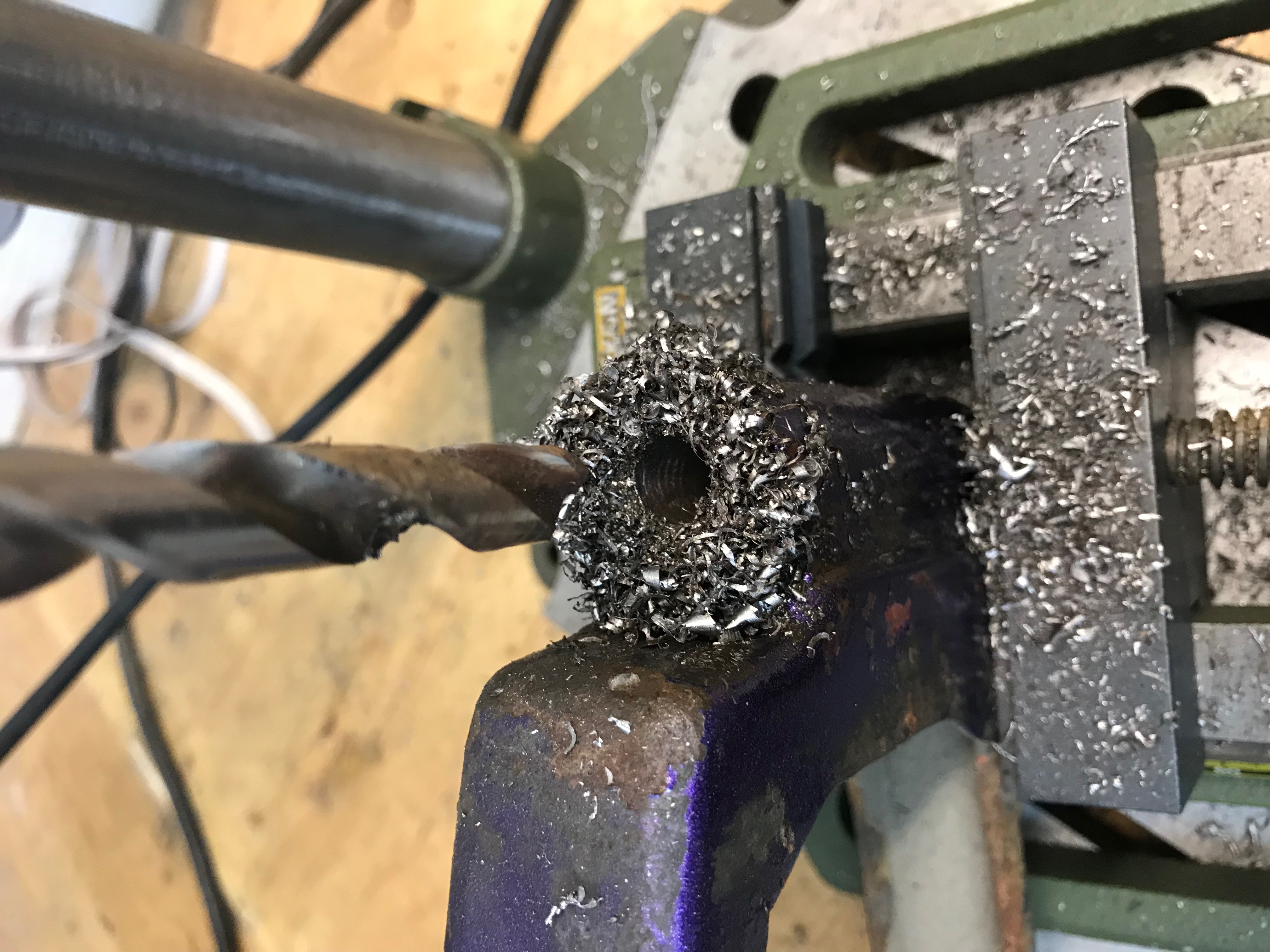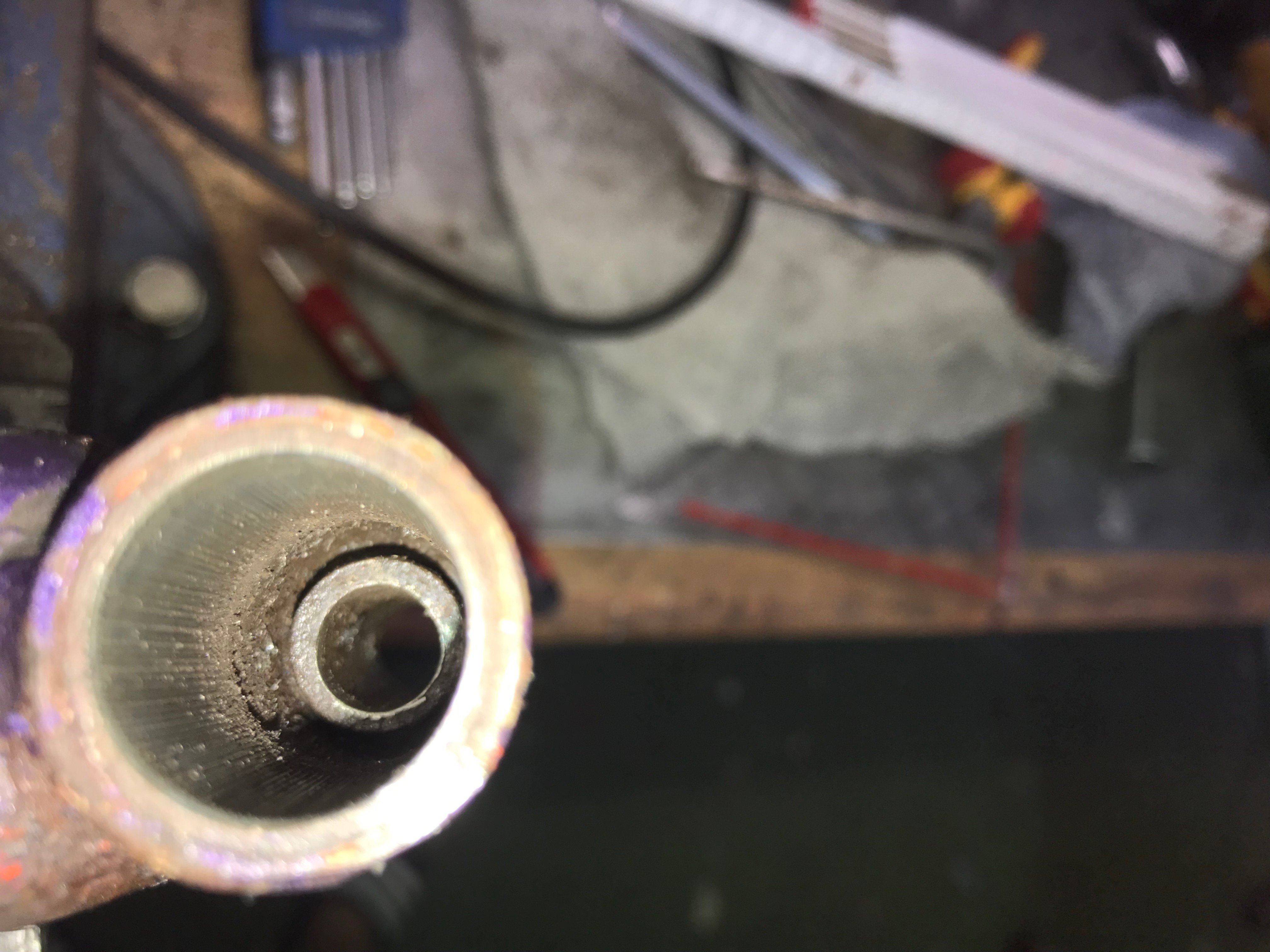 Aber ich habe dann ein Rohr eingelötet. da passt dann wieder eine Buchse rein und dann die M8er Schraube.