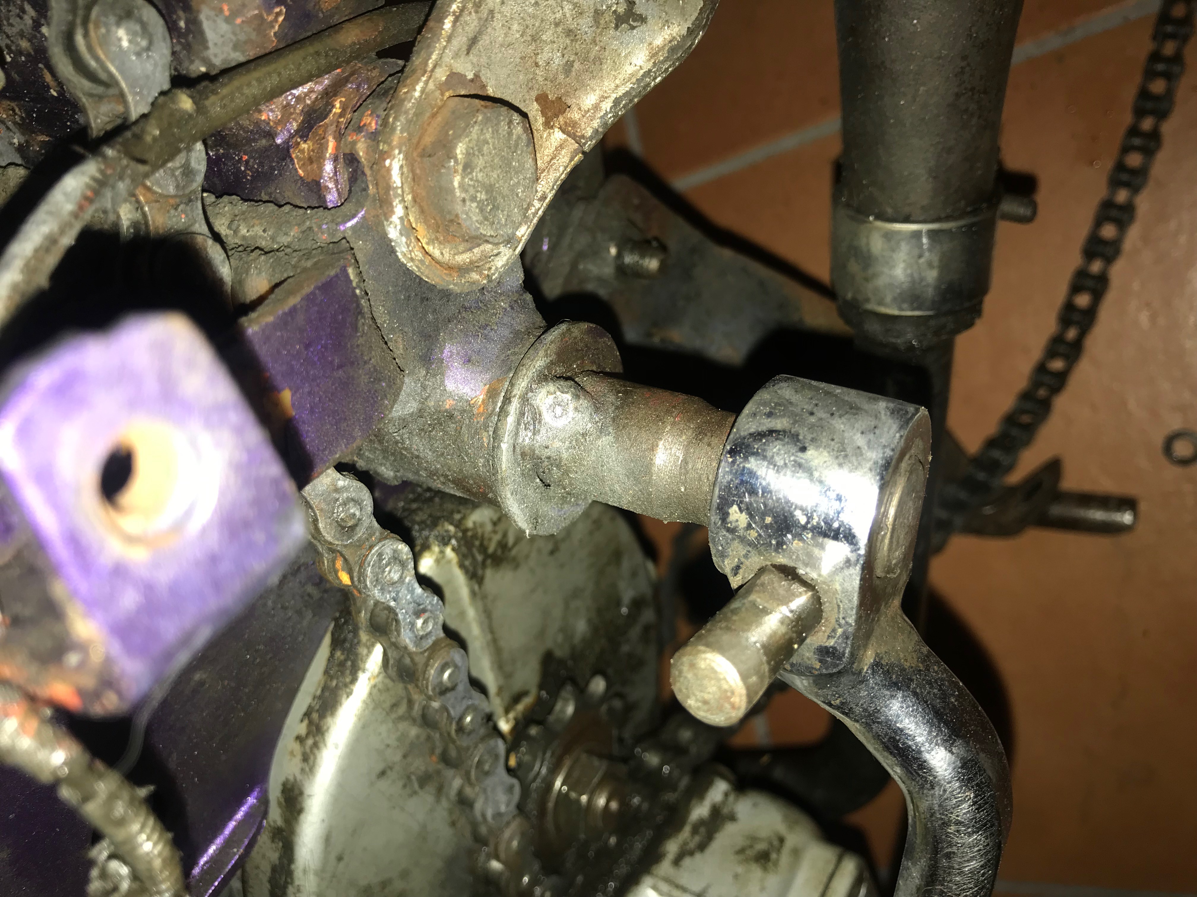 Als erstes habe ich die Staenderaufnahme wieder in einen Normalzustand versetzt. Der Bolzen war fest.