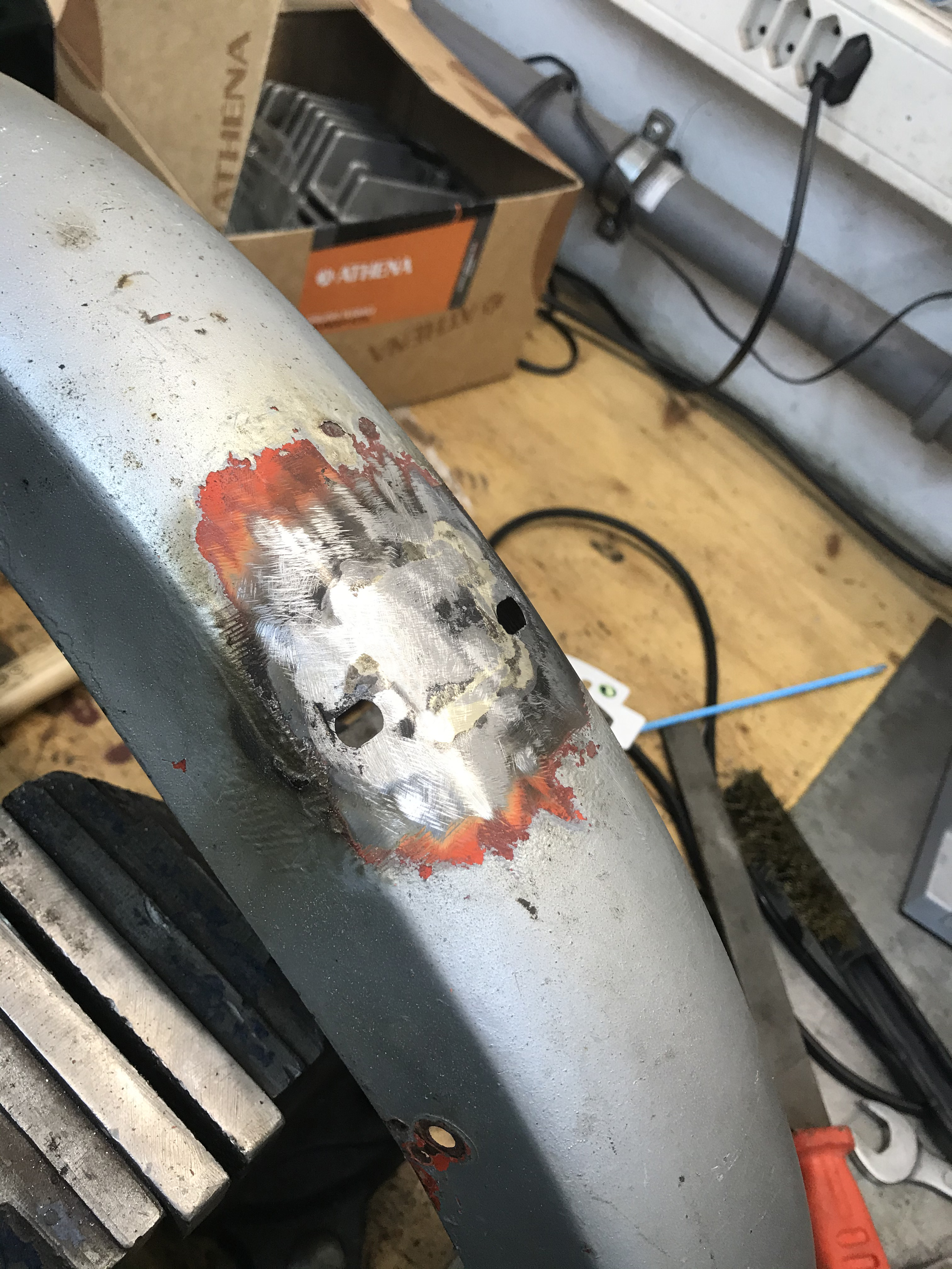 Am WE hab ich nicht viel gemacht, hab allerdings ein schlecht geflicktes Loch im hinteren Schutzblech gefunden.