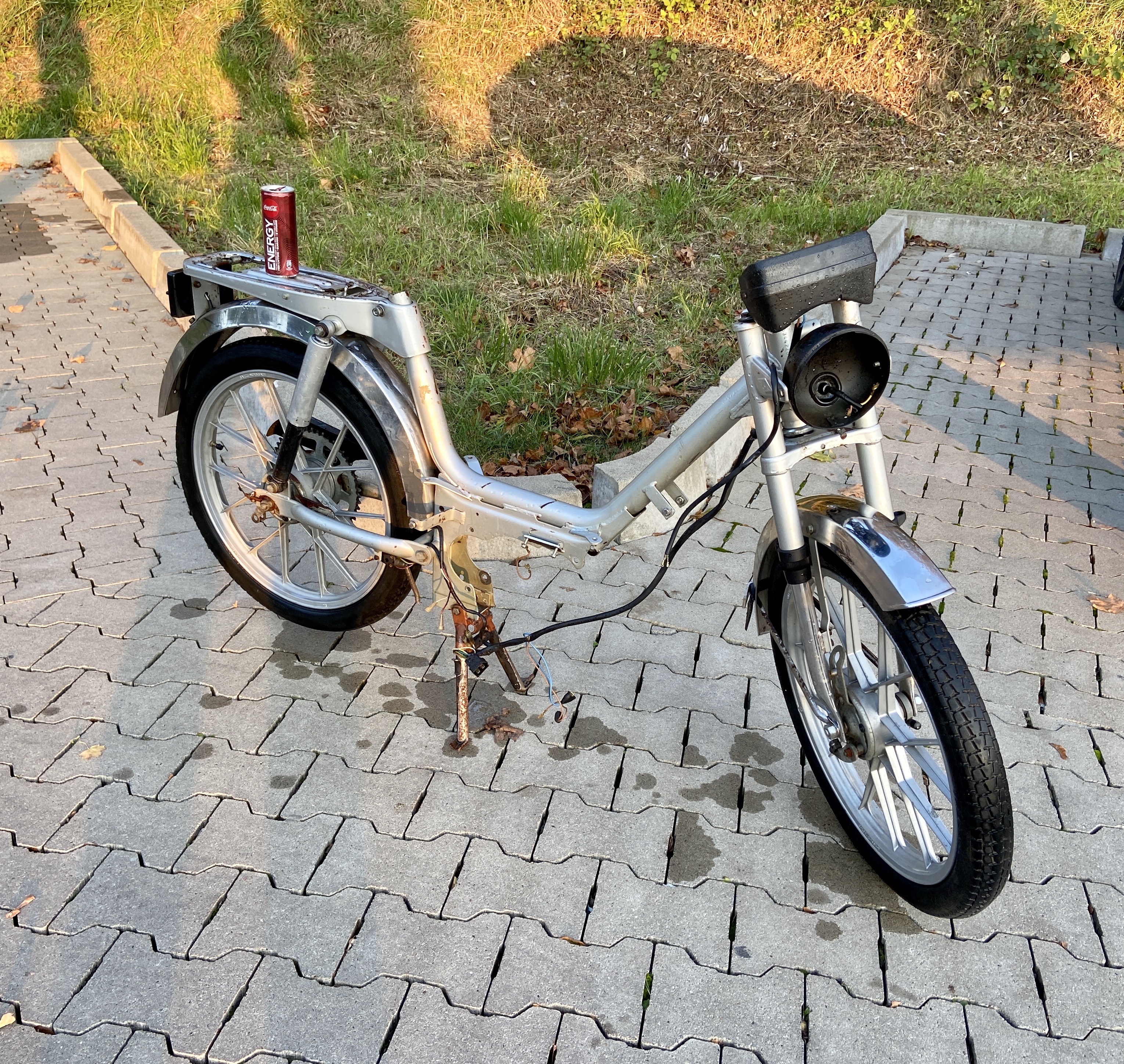 mal auf der rechten seite bei dir, der hintere bügel wo man trittplastik dranschraubt.... da hatte sachs diese regler dran . evtl hast loch gebohrt und kannst das zb nen winkel dranmachen