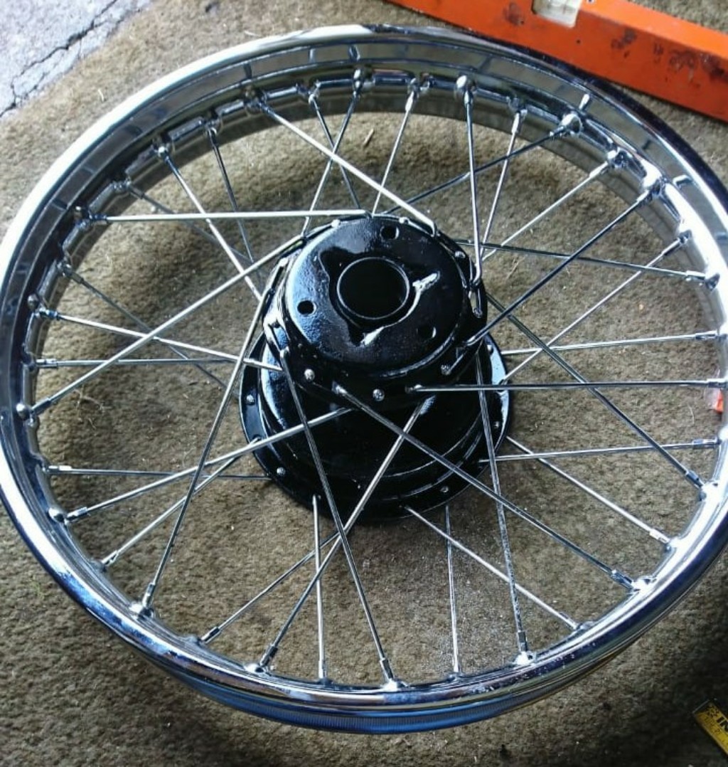 Die Naben sind zurück. Und die Lackteile hab ich auch grundiert. Und der Vergaser war auch im Ultraschallbad Am WE werd ich einspeichern.