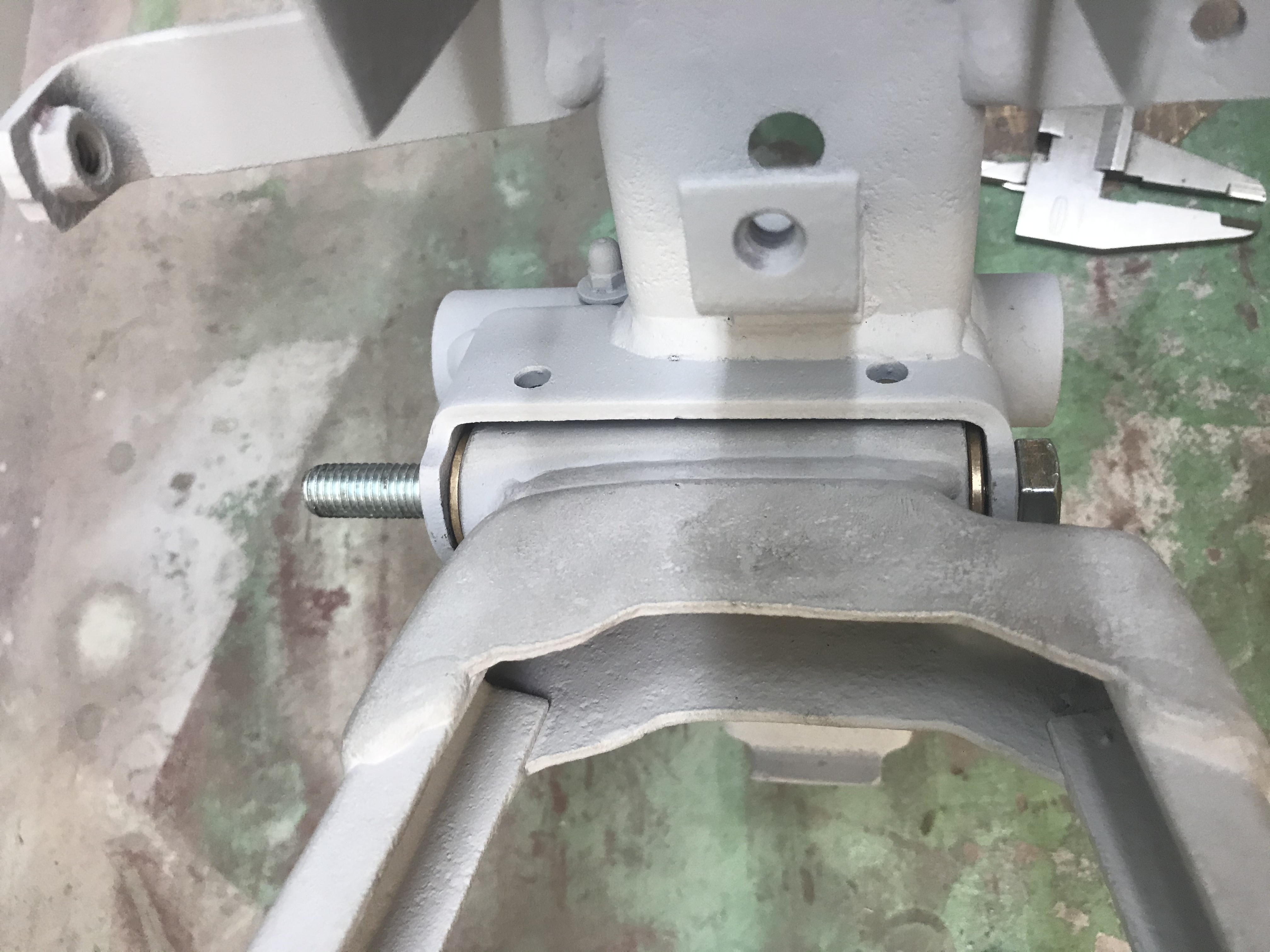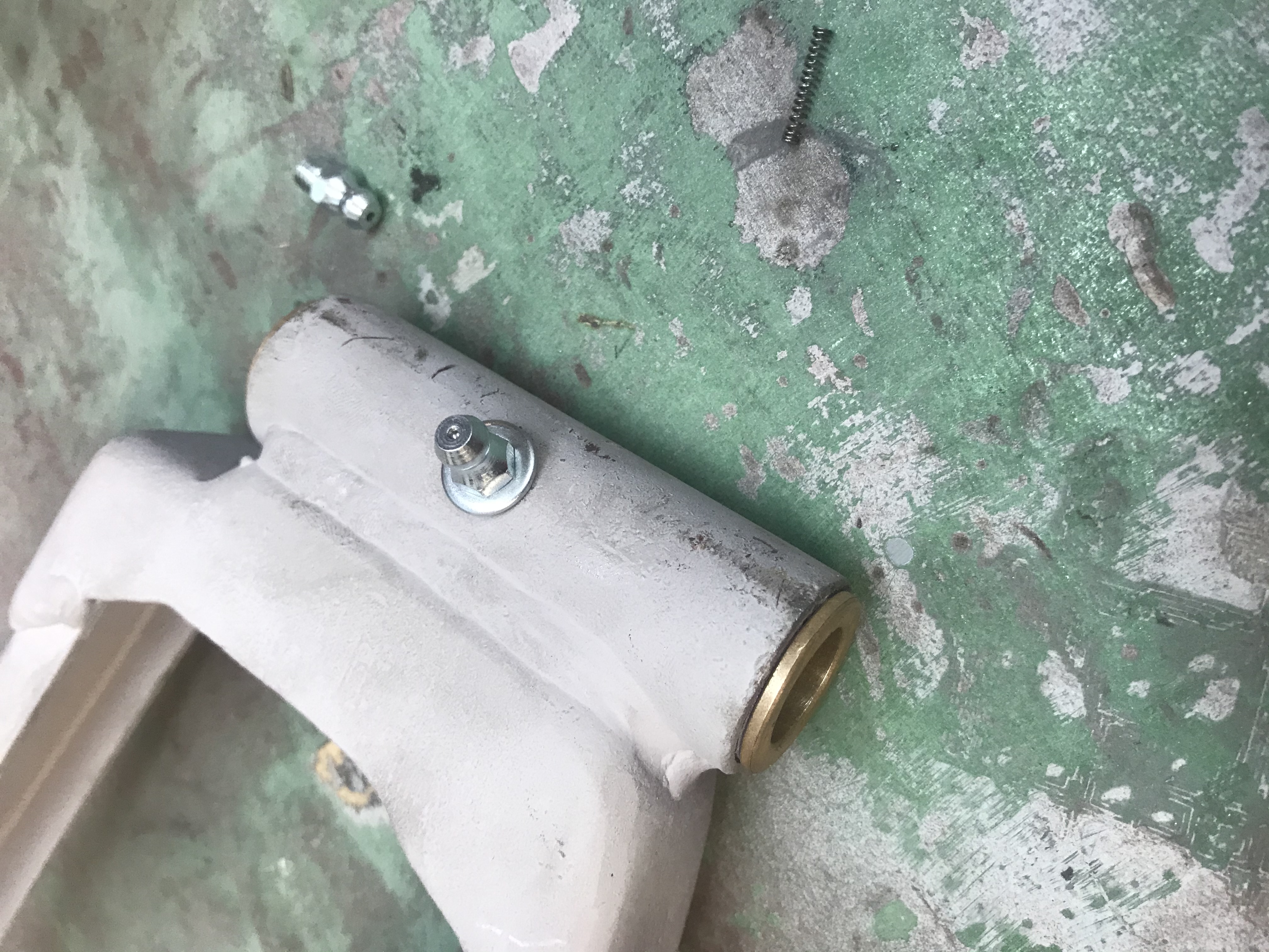 (wenn das ganze dann lackiert ist wird ist, wird die Schwinge voll Fett gepresst. Die Hülse musste ich ein wenig schleifen. Eine wirklich kostengünstige Alternative zu den nicht mehr erhältlichen Silentblöcken.