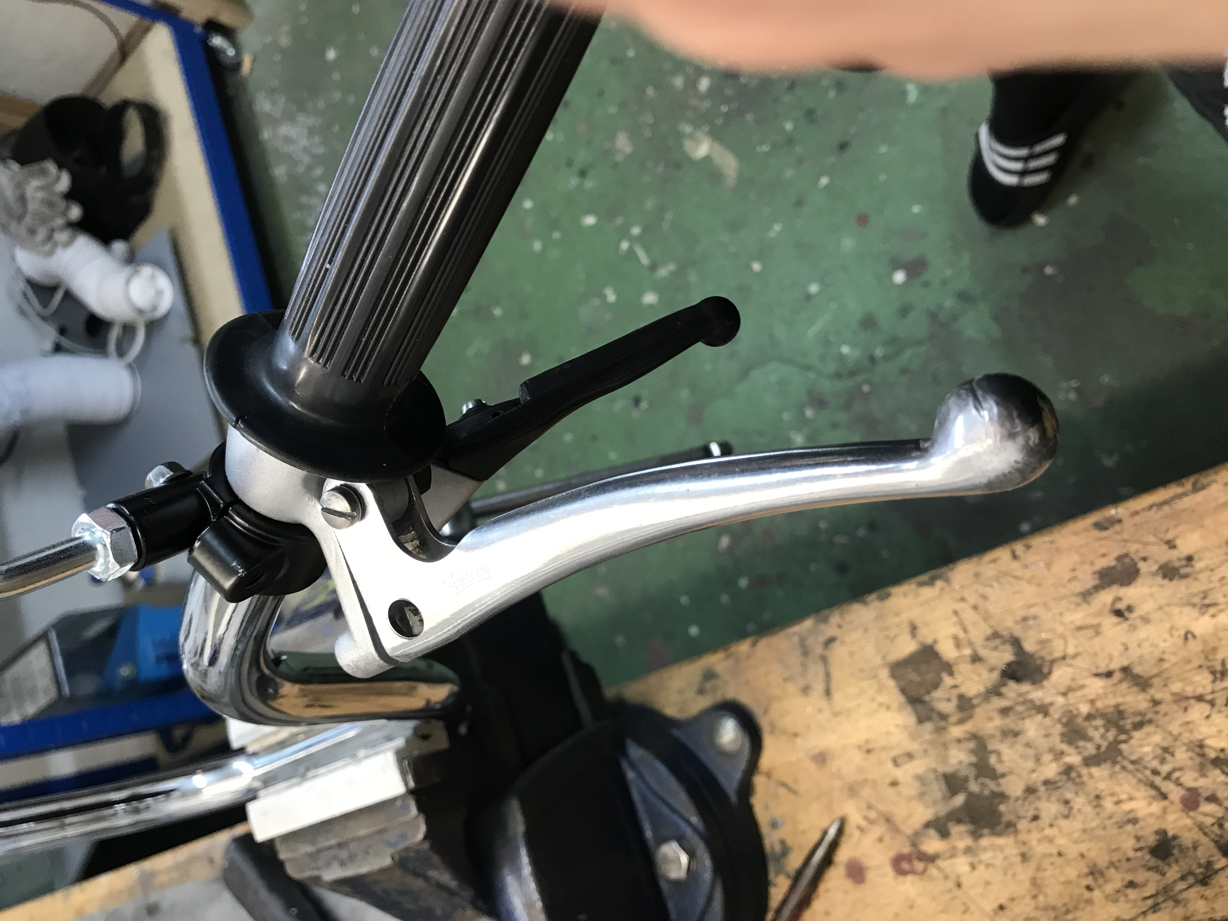 Schön das ich nicht der einzige bin der die "moderne" Klemmung für den Rückspiegel benutzt. Die hält wenigstens. Ich hab meine aber grau gespritzt damit sie besser zu den grauen Griffarmaturen passt.