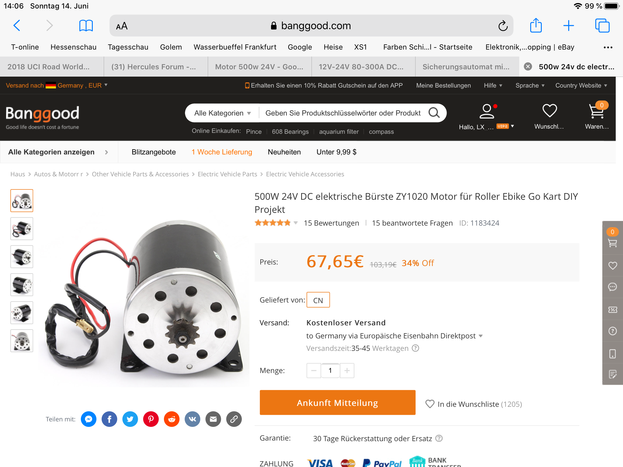 Ziel ist aber ein oder mehrere Parallele leichte LiPo Akku ( mit 36V) welcher teurer sein wird als alles zusammen.