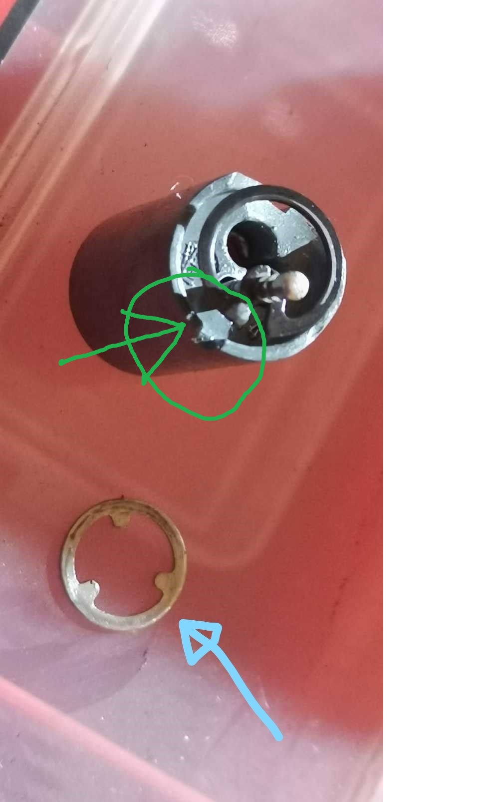 Ist da beim Schieber was abgebrochen? Siehe grüner Pfeil.
