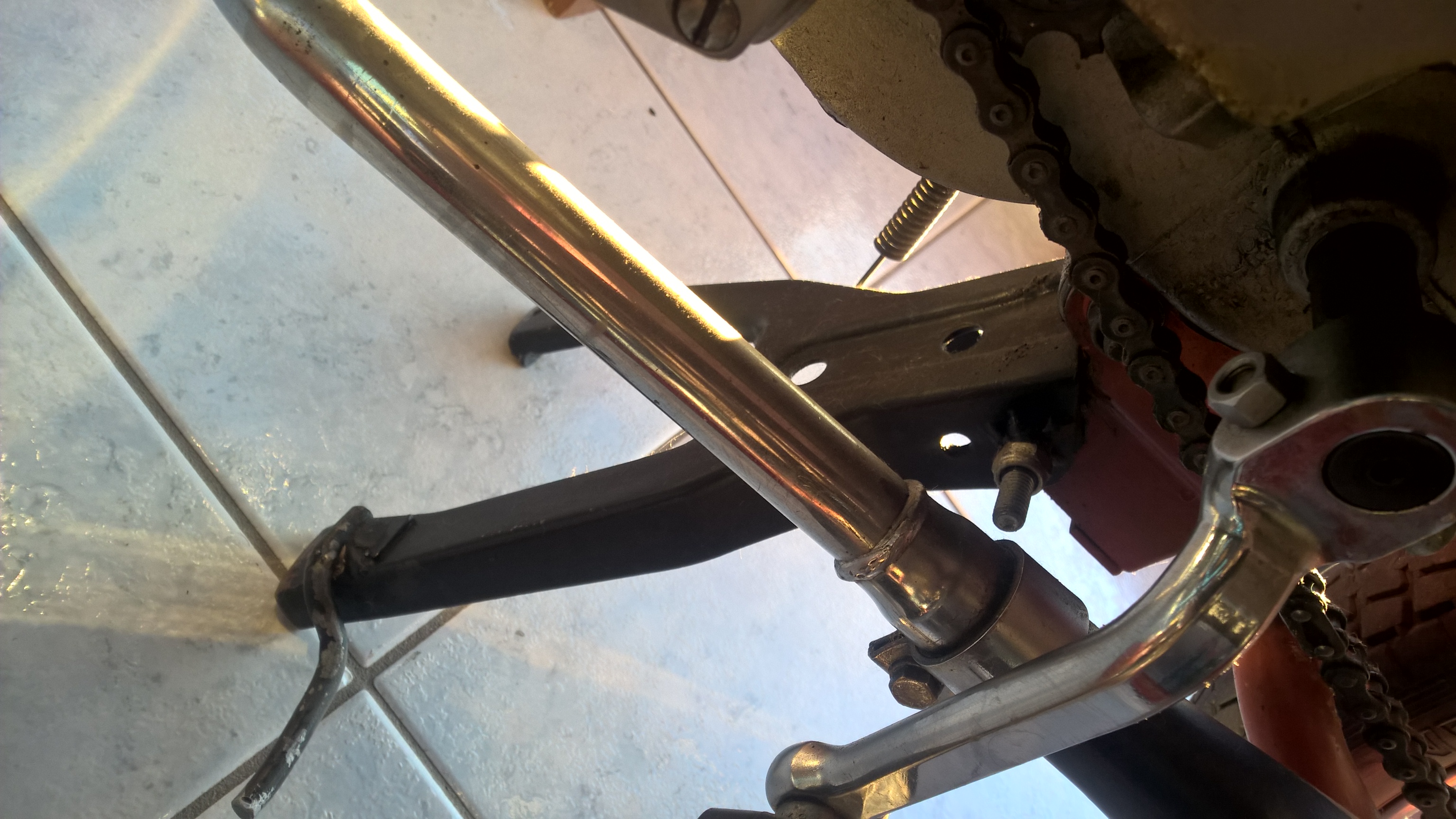 Ich weiß jetzt nicht, ob mein Vorbesitzer, der das sicher als "Mofa" gefahren hat, schneller sein wollte oder warum er das tat, denn immerhin fuhr er das 50er Kettenrad. Also wird der soviel schneller dadurch nicht geworden sein.