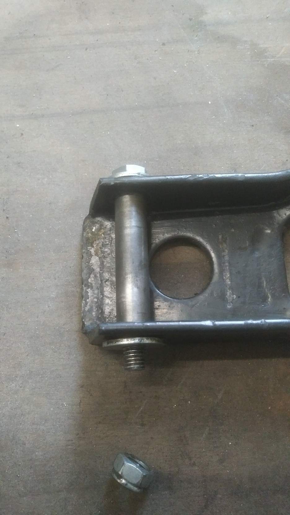 Leider haben wir letztens an "Mitch"'s M2 festgestellt das bei ihm die Buchse sich nicht mehr bewegen lies, sie war nicht aus dem Rahmen zu bekommen, und auch so hart das man sie nicht ausbohren konnte. Das wunderte mich, scheinbar war die Buchse durch das lange stehen und der bewegung der Schaube "aufgepilzt" an den Enden!? Keine Chance, nicht mit Hammerschlägen und auch nicht mit bohren die da raus zu bekommen.