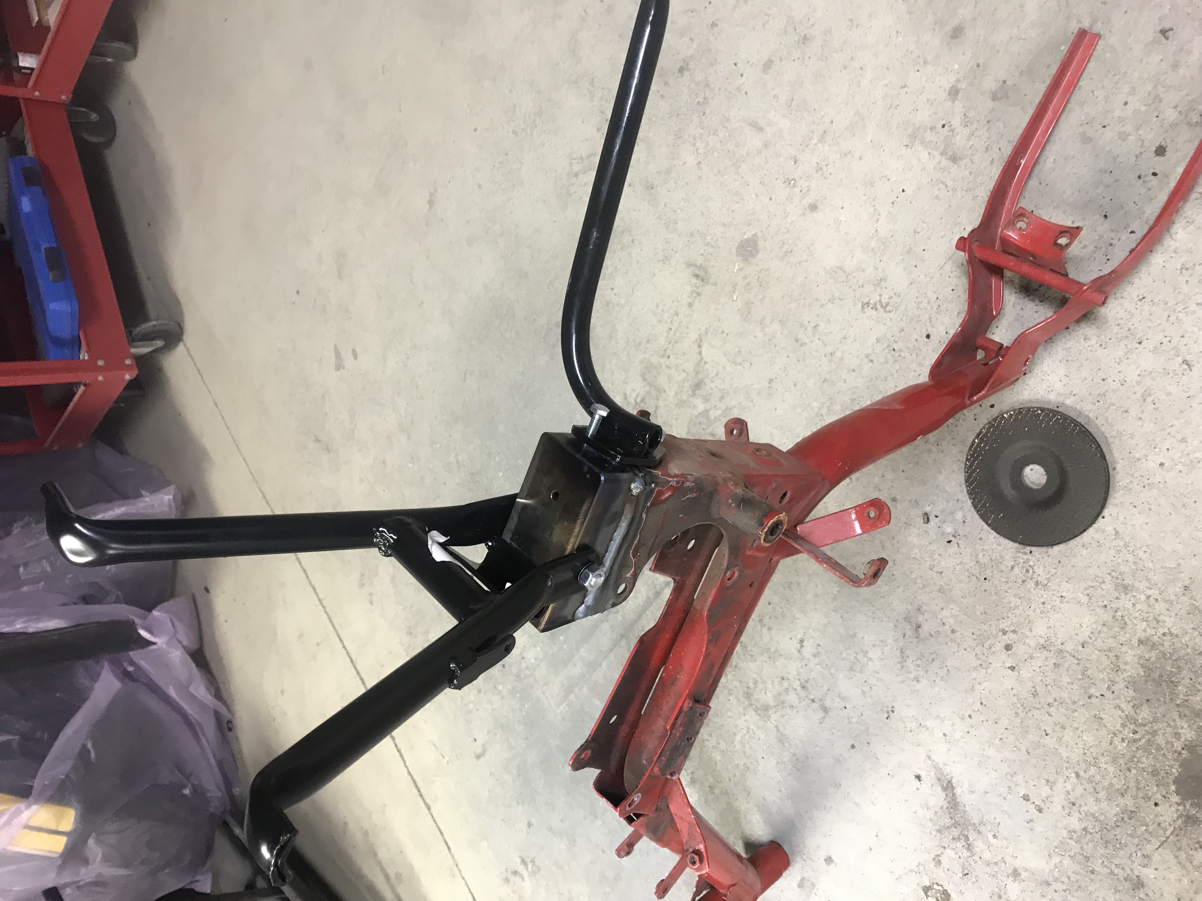 Die Ständer Aufnahme ist neu eingeschweißt. Der Rahmen die schwinge und der Gepäckträger sind auch schon neu lackiert und montiert. Der Rest kommt die Woche vom lackieren.