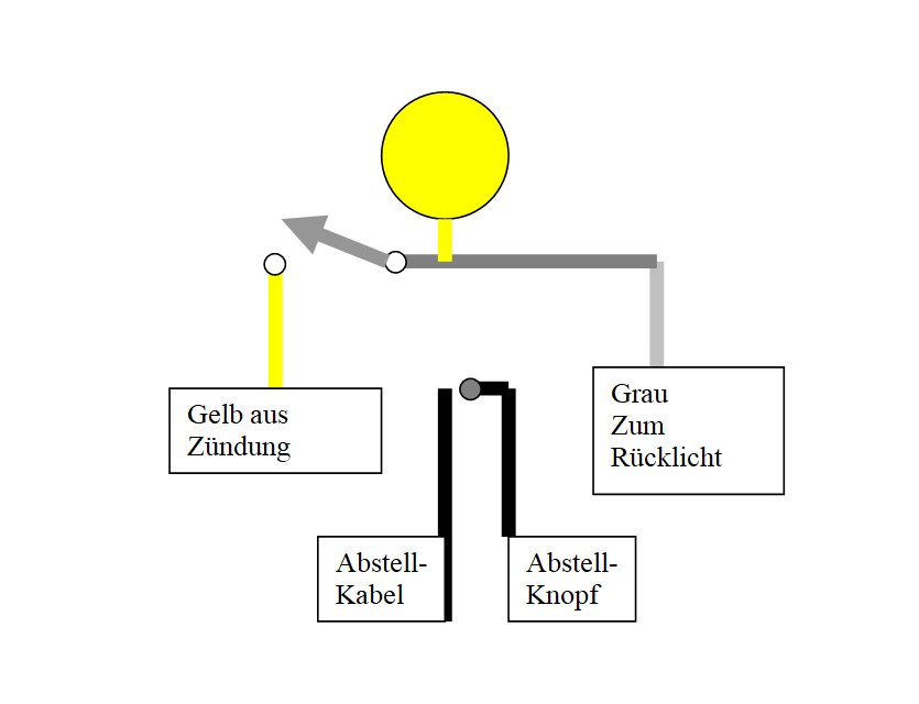 Es kommt ein gelbes (Strom ) und ein schwarzer Kabel aus der ZS (schwarz müsste für den Kill da sein )