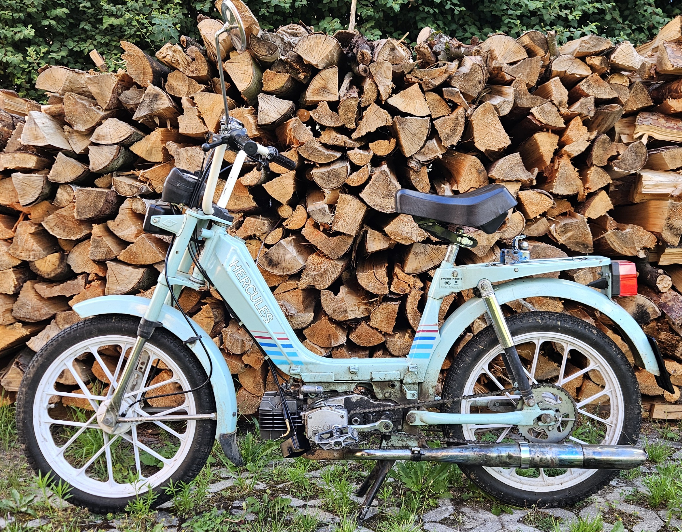 Dies nachdem ich meine Eltern knapp zwei Jahre fast täglich wegen einer Hercules M5 oder M2 "genervt habe" und ihnen wohl irgendwann der Geduldsfaden gerissen ist. Mit 17 durfte ich den Führerschein Klasse 4 machen und direkt mit einem Mokick einsteigen.