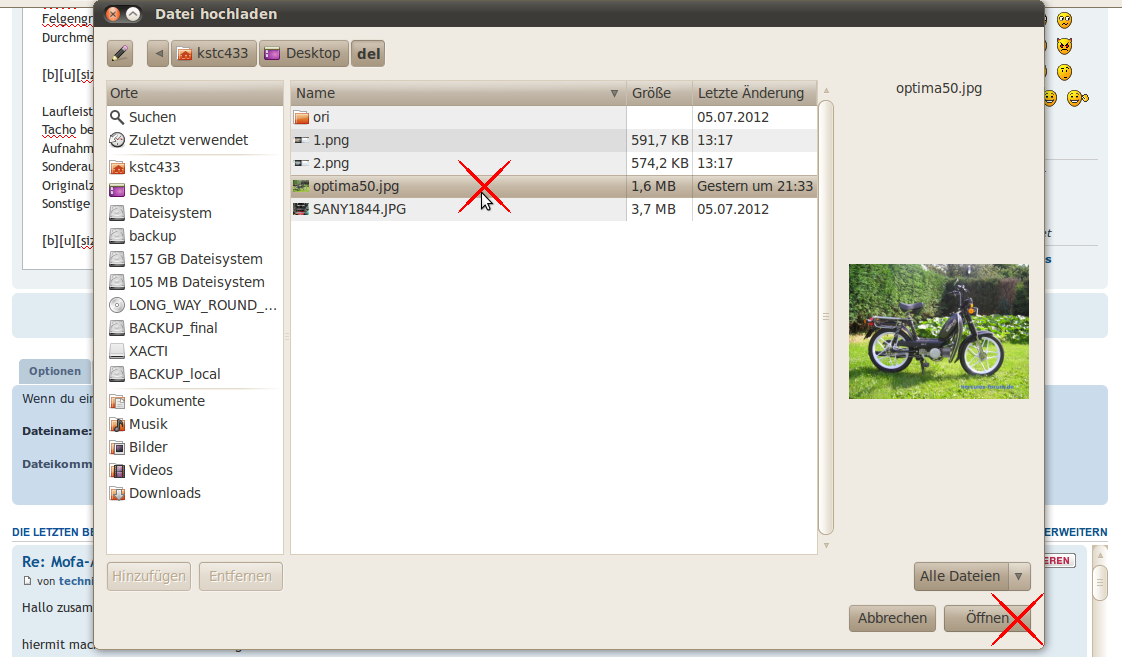 Es wäre schön, wenn die Uploads mindestens die Seitenansichten des Zweirades beinhalten.