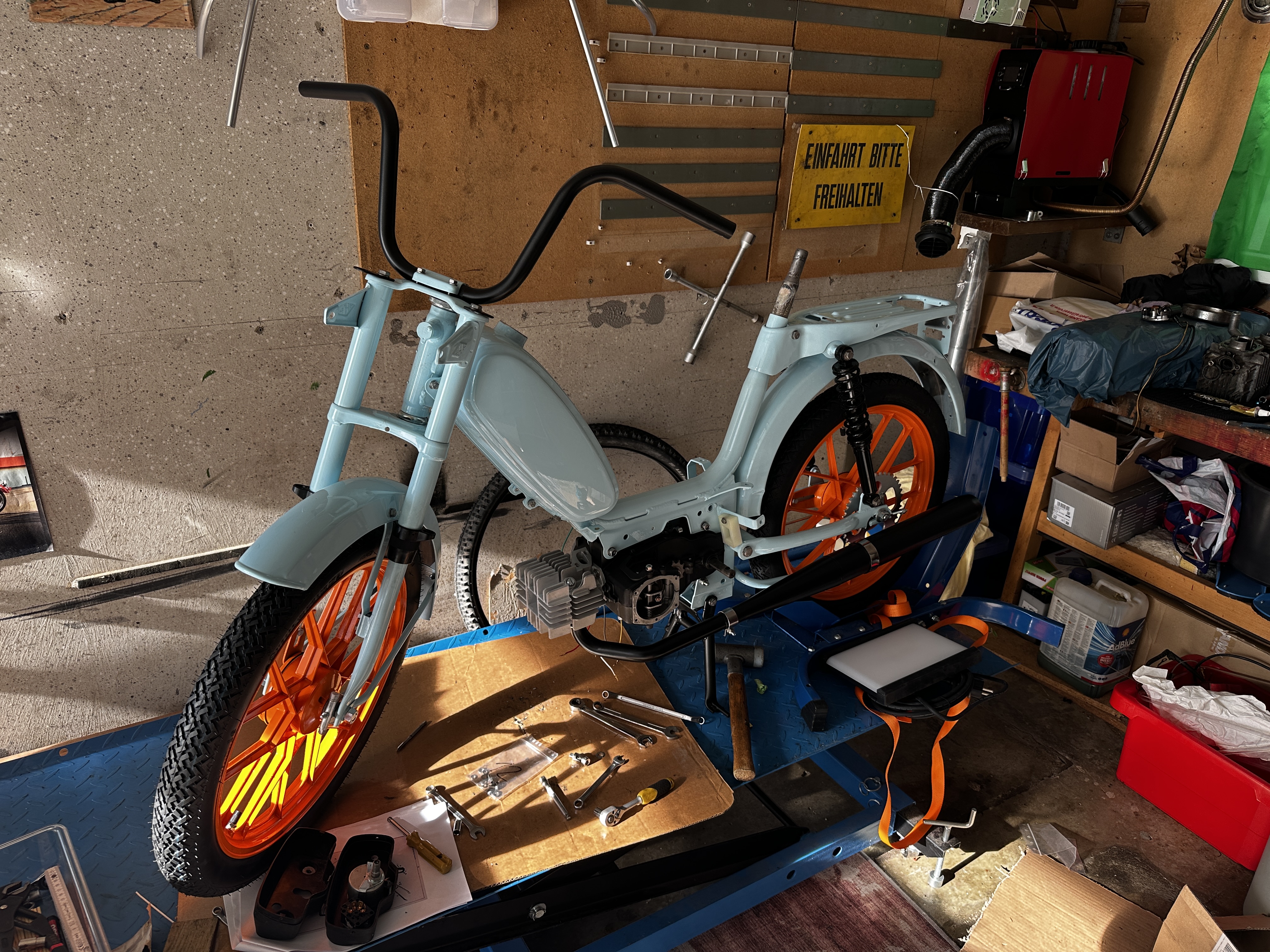 Wenn ich originalgetreu restauriert hätte wäre vieles vielleicht einfacher gewesen. Es ist halt nervend wenn man eigentlich alle Teile hat und dennoch fehlt immer etwas :lol: So muss ich den Gaszug bzw. Vergaser abändern da der Zug so zu kurz ist, warum auch immer :crazy: